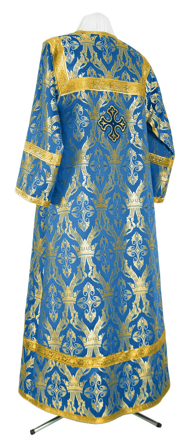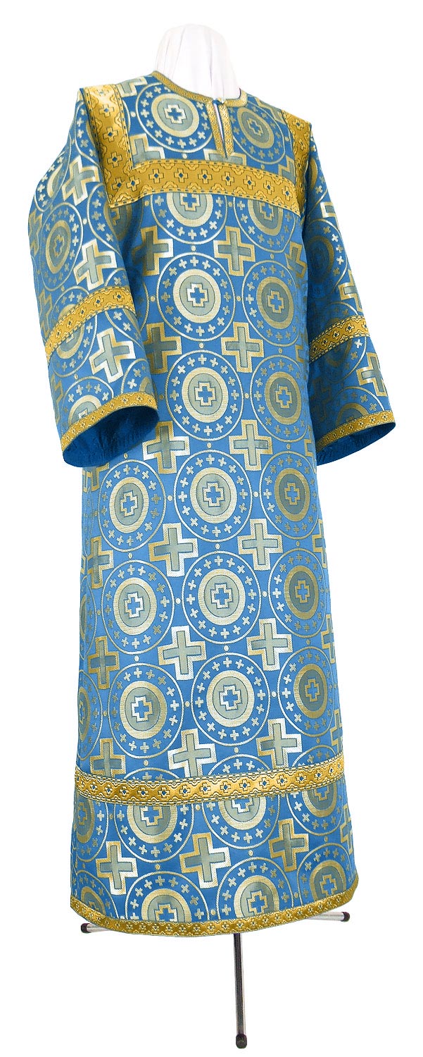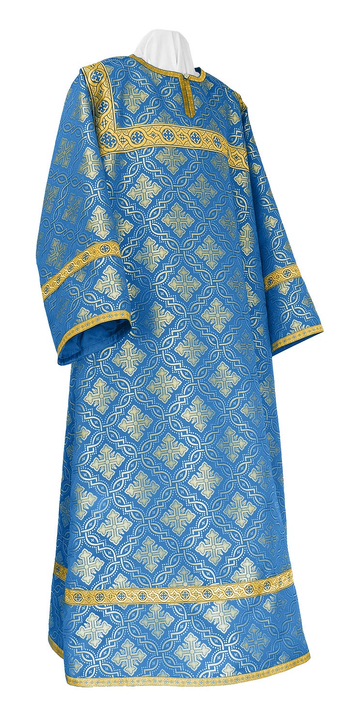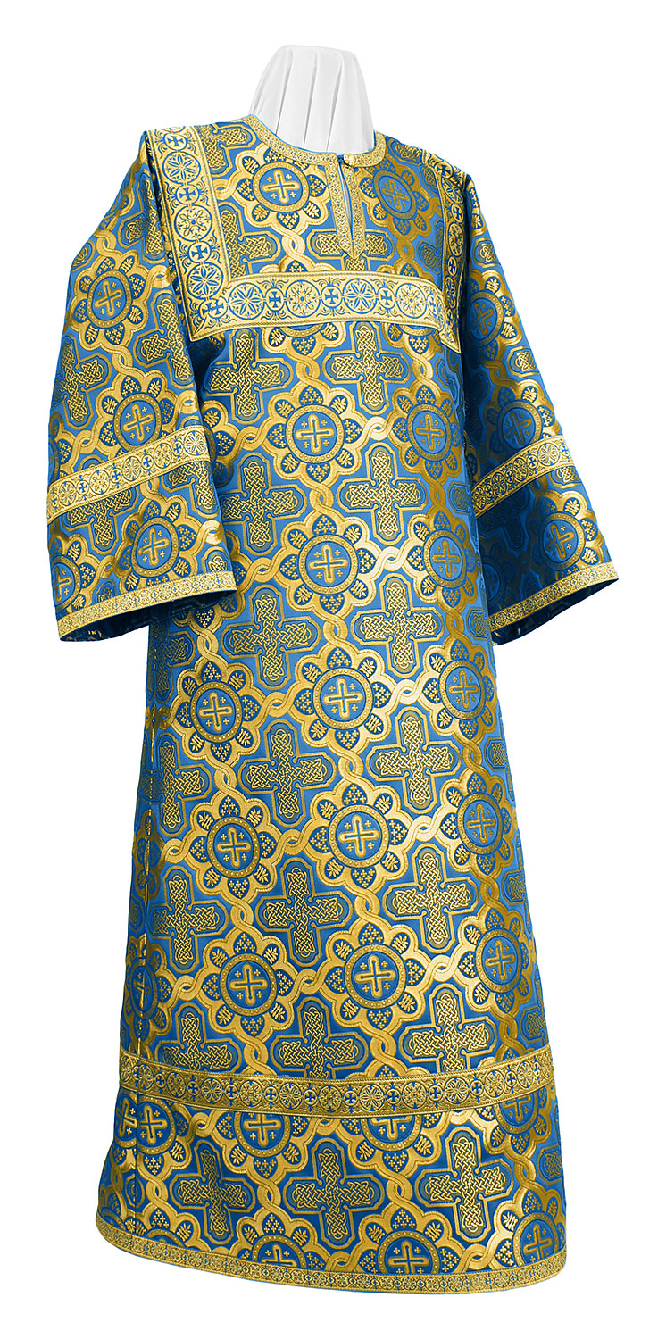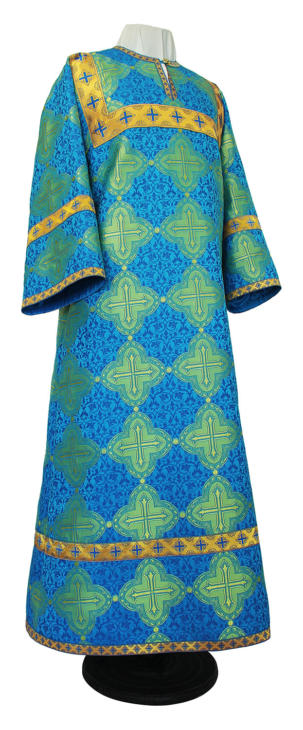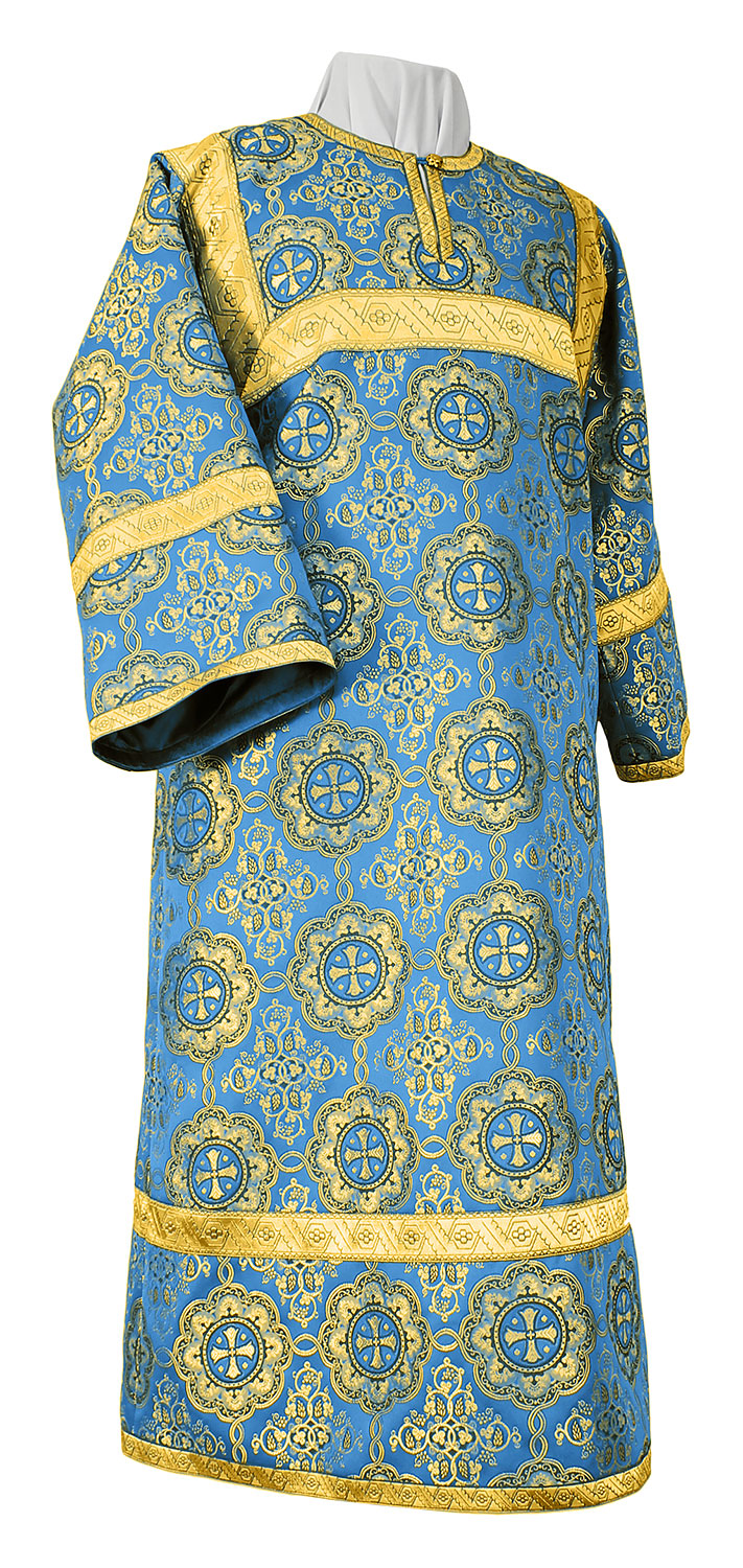 Altar server robe (stikharion, alb). Rayon jacquard brocade, class S3. Please send us your measurements per our Measurement Chart. Please note that picture for this product is a sample one. If you would like specific fabric (in the same fabric class as this product) to be used for your order, please review Fabrics section and make a note in the Notes field of your order (at the last order placing page) which fabric you prefer. Economy vestment type (Ec) means decoration with inexpensive gallon (usually Indian) and non-embroidered crosses or crosses with inexpensive embroidery (at our discretion). For Standard style (St) we use good quality solid galloon and richly embroidered crosses. Premier stile (Pr) means decoration with excellent hand-embroidered crosses and solid jacquard galloons. For all vestments we use natural rayon lining (no synthetics). Excellent quality natural velvet is used for inserts. By default, we make this item with closed sides, i.e. for untonsured persons. So called Deacon's stikharions, i.e. with open buttoned sides are worn by persons who have canonical right (Anth. 5; Laod. 19; VI 69) to be in the altar (Deacon, Subdeacon, Reader and Singer). Washing & Care Instructions: we recommend dry cleaning, no bleach, low temperature ironing inside out. |
