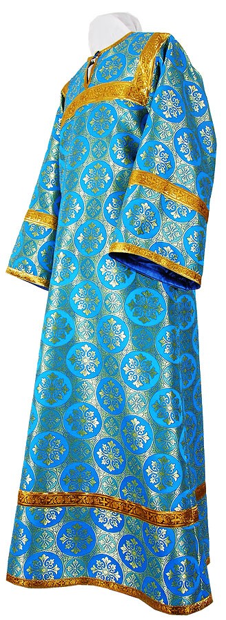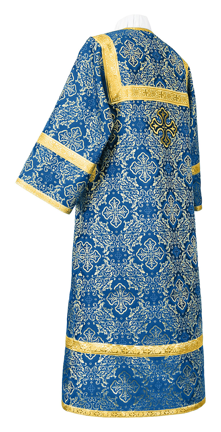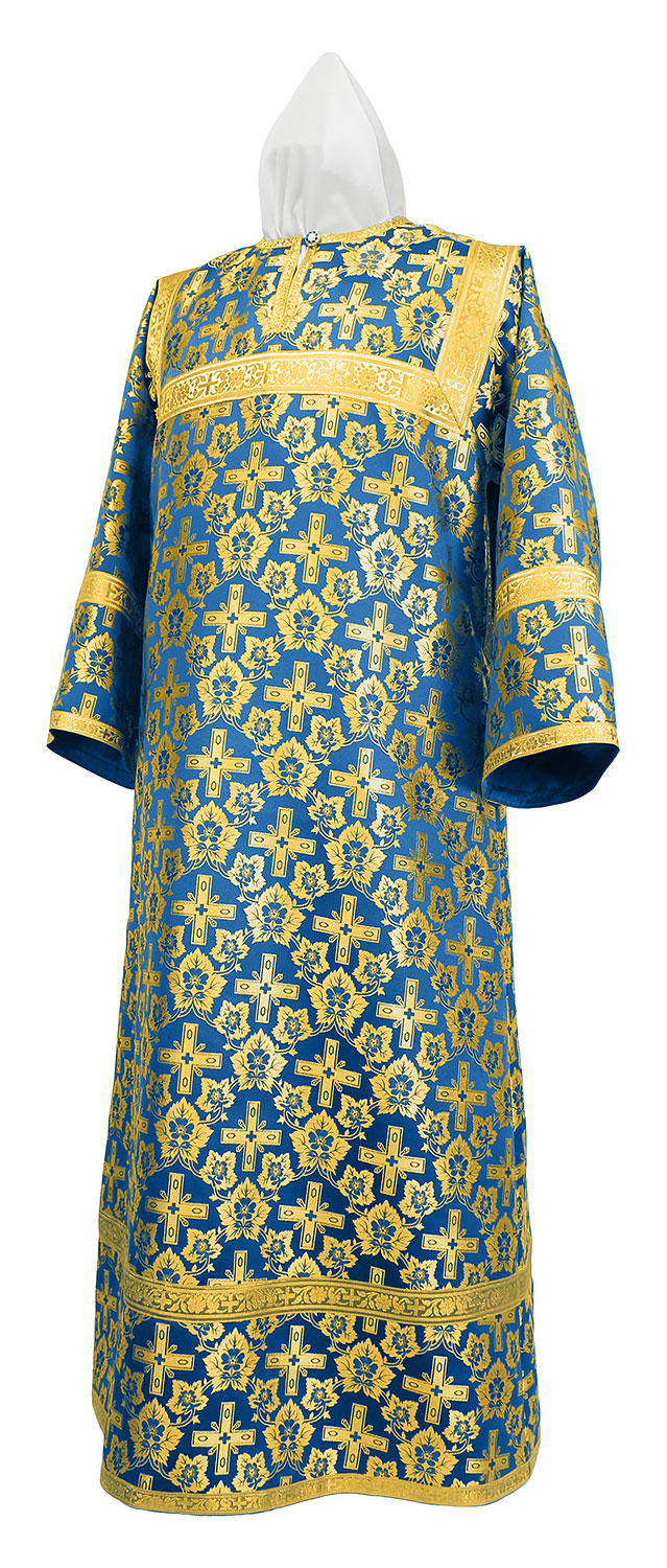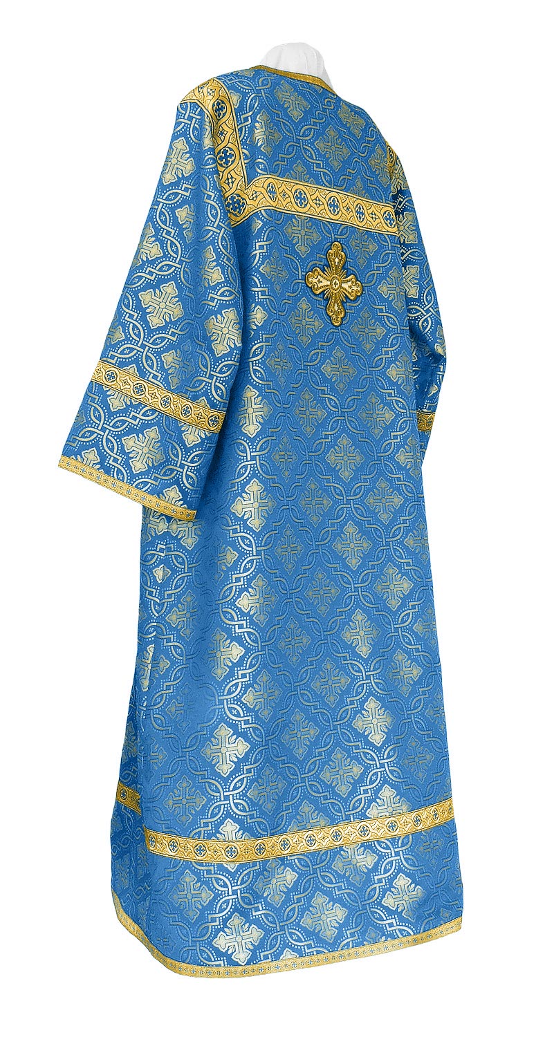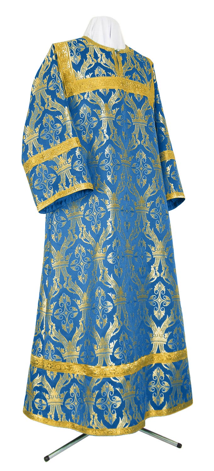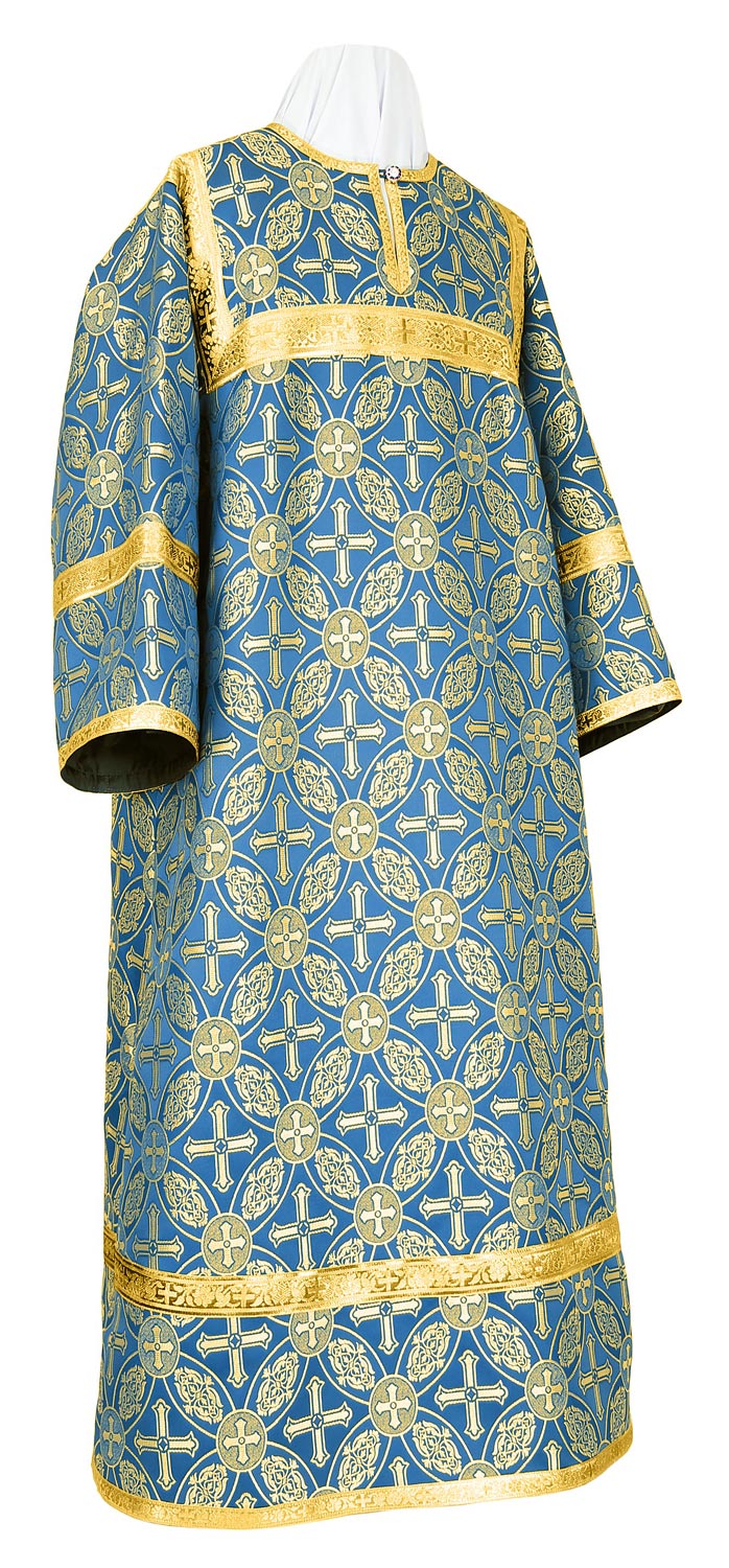 Altar server robe (stikharion, alb). Rayon jacquard brocade, class S3. Please send us your measurements per our Measurement Chart. Please note that picture for this product is a sample one. If you would like specific fabric (in the same fabric class as this product) to be used for your order, please review Fabrics section and make a note in the Notes field of your order (at the last order placing page) which fabric you prefer. Economy vestment type (Ec) means decoration with inexpensive gallon (usually Indian) and non-embroidered crosses or crosses with inexpensive embroidery (at our discretion). For Standard style (St) we use good quality solid galloon and richly embroidered crosses. Premier stile (Pr) means decoration with excellent hand-embroidered crosses and solid jacquard galloons. For all vestments we use natural rayon lining (no synthetics). Excellent quality natural velvet is used for inserts. By default, we make this item with closed sides, i.e. for untonsured persons. So called Deacon's stikharions, i.e. with open buttoned sides are worn by persons who have canonical right (Anth. 5; Laod. 19; VI 69) to be in the altar (Deacon, Subdeacon, Reader and Singer). Washing & Care Instructions: we recommend dry cleaning, no bleach, low temperature ironing inside out. |