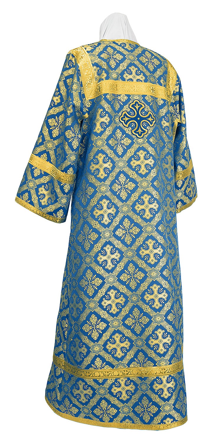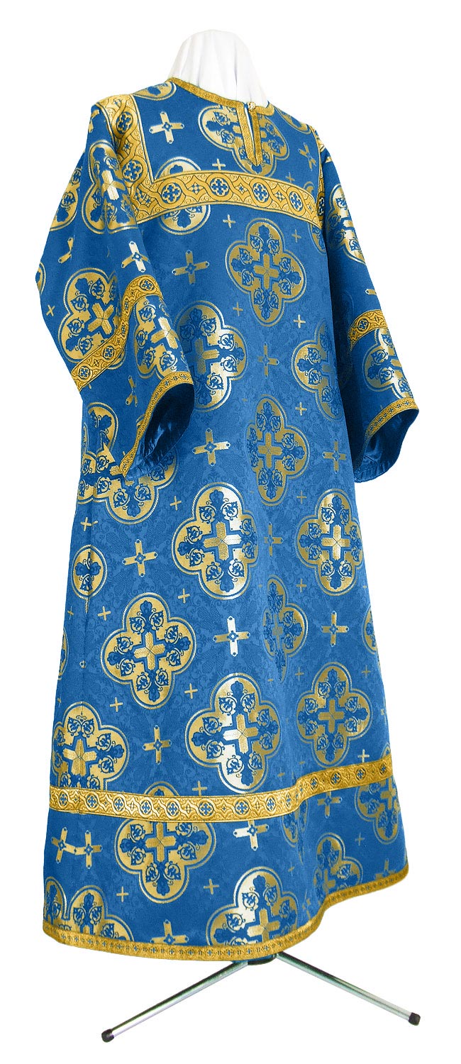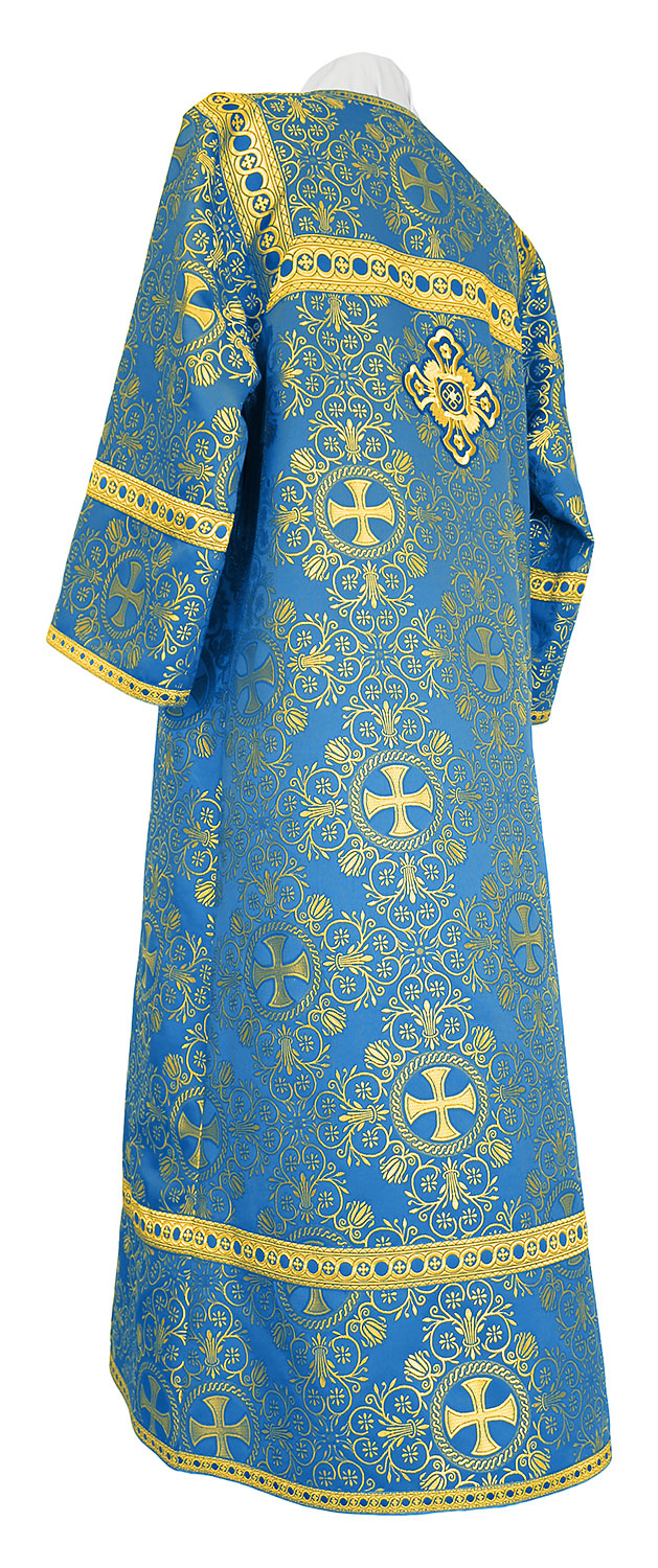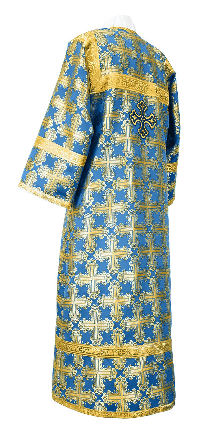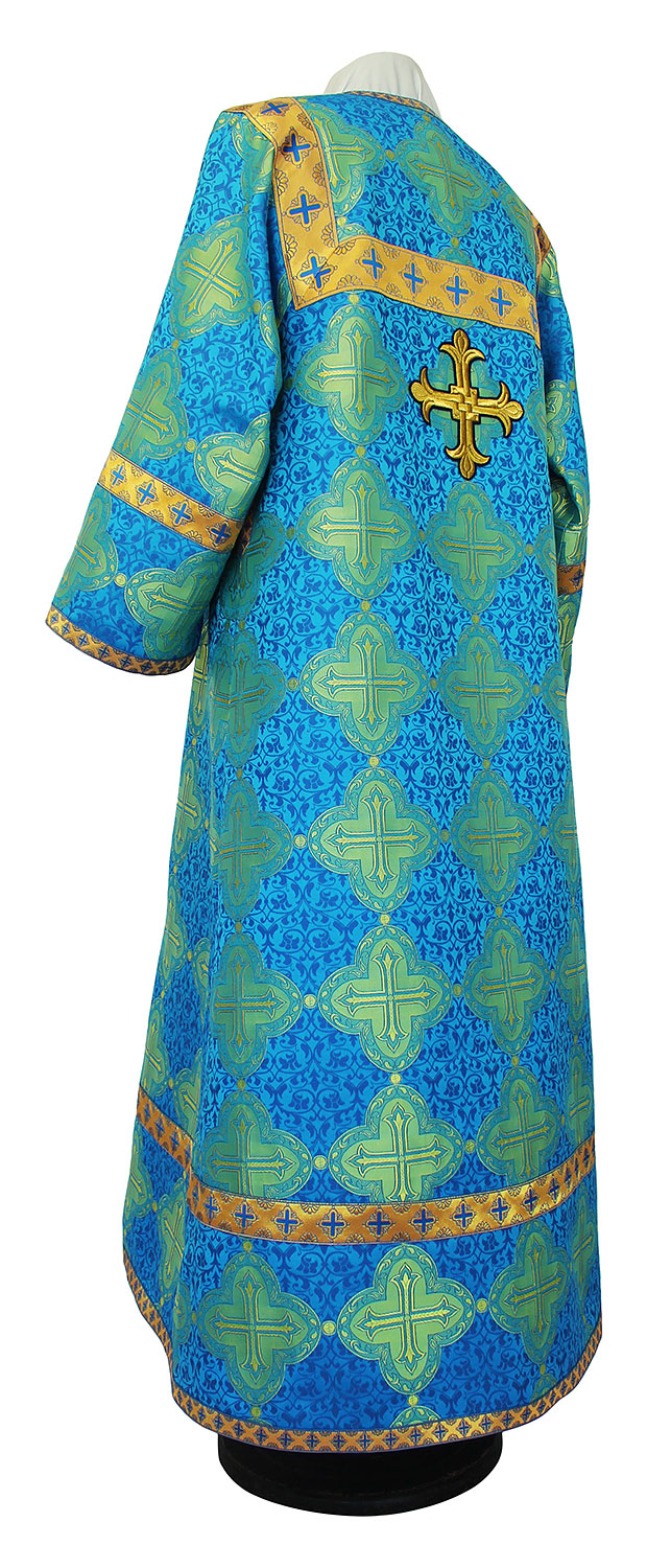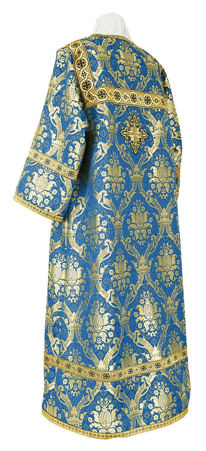 Altar server robe (stikharion, alb). Rayon jacquard brocade, class S3. Please send us your measurements per our Measurement Chart. Please note that picture for this product is a sample one. If you would like specific fabric (in the same fabric class as this product) to be used for your order, please review Fabrics section and make a note in the Notes field of your order (at the last order placing page) which fabric you prefer. Economy vestment type (Ec) means decoration with inexpensive gallon (usually Indian) and non-embroidered crosses or crosses with inexpensive embroidery (at our discretion). For Standard style (St) we use good quality solid galloon and richly embroidered crosses. Premier stile (Pr) means decoration with excellent hand-embroidered crosses and solid jacquard galloons. For all vestments we use natural rayon lining (no synthetics). Excellent quality natural velvet is used for inserts. By default, we make this item with closed sides, i.e. for untonsured persons. So called Deacon's stikharions, i.e. with open buttoned sides are worn by persons who have canonical right (Anth. 5; Laod. 19; VI 69) to be in the altar (Deacon, Subdeacon, Reader and Singer). Washing & Care Instructions: we recommend dry cleaning, no bleach, low temperature ironing inside out. |