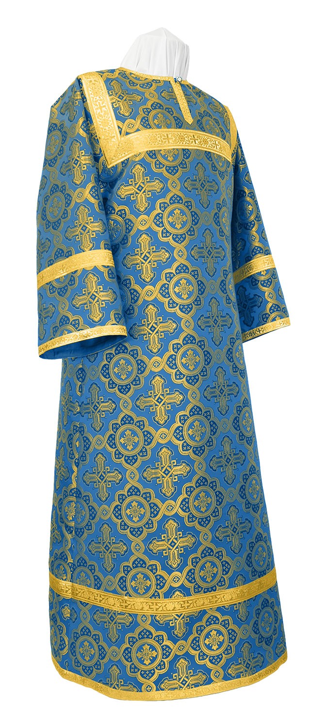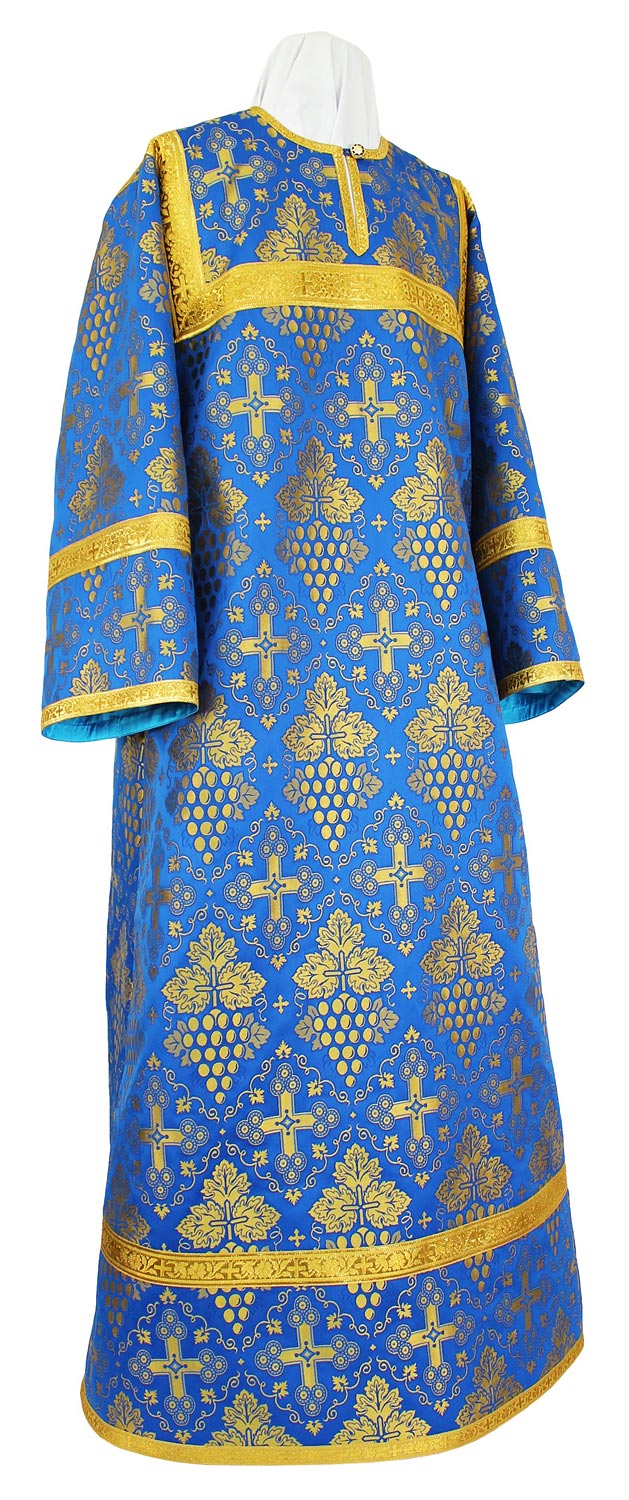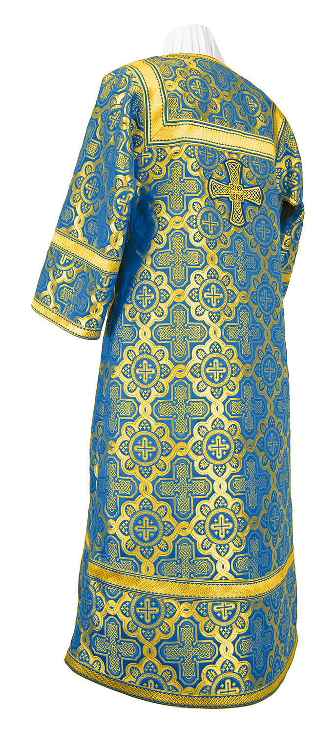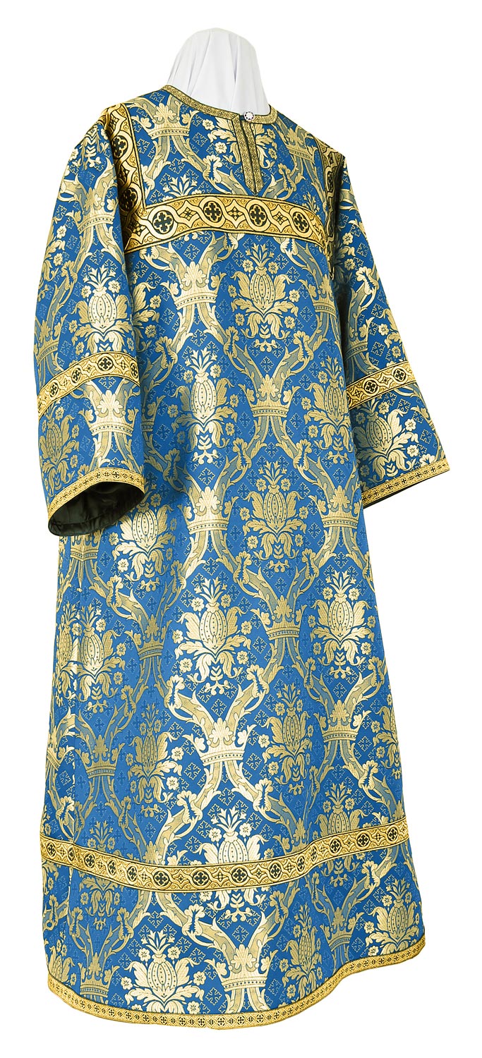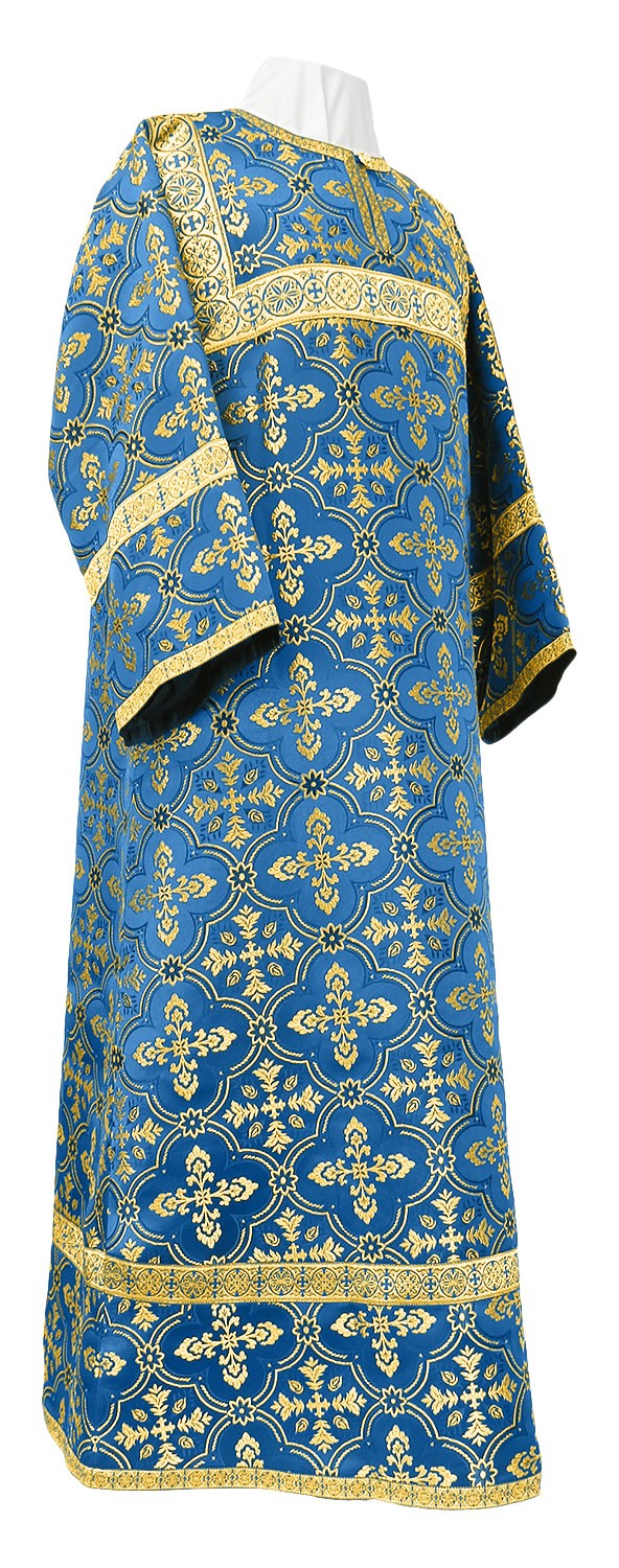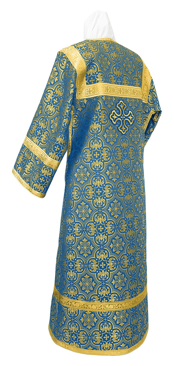Altar server robe (stikharion, alb). Rayon jacquard brocade, class S3. Please send us your measurements per our Measurement Chart. Please note that picture for this product is a sample one. If you would like specific fabric (in the same fabric class as this product) to be used for your order, please review Fabrics section and make a note in the Notes field of your order (at the last order placing page) which fabric you prefer. Economy vestment type (Ec) means decoration with inexpensive gallon (usually Indian) and non-embroidered crosses or crosses with inexpensive embroidery (at our discretion). For Standard style (St) we use good quality solid galloon and richly embroidered crosses. Premier stile (Pr) means decoration with excellent hand-embroidered crosses and solid jacquard galloons. For all vestments we use natural rayon lining (no synthetics). Excellent quality natural velvet is used for inserts. By default, we make this item with closed sides, i.e. for untonsured persons. So called Deacon's stikharions, i.e. with open buttoned sides are worn by persons who have canonical right (Anth. 5; Laod. 19; VI 69) to be in the altar (Deacon, Subdeacon, Reader and Singer). Washing & Care Instructions: we recommend dry cleaning, no bleach, low temperature ironing inside out. |