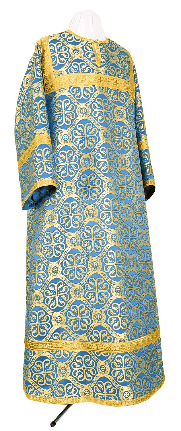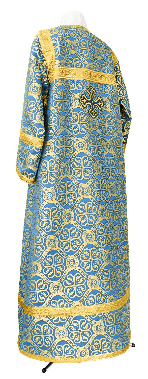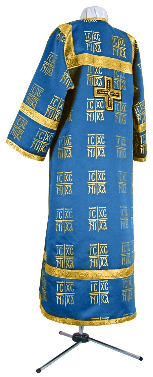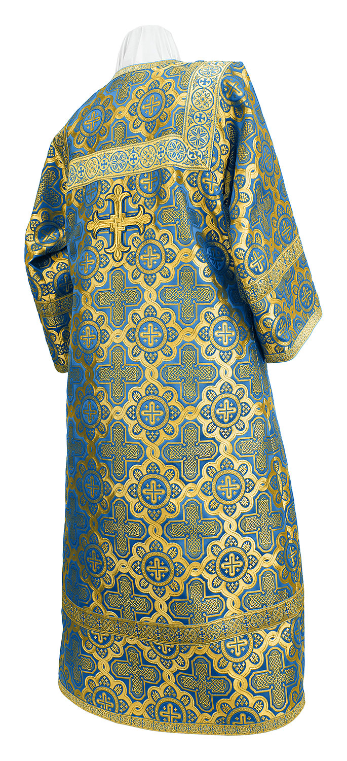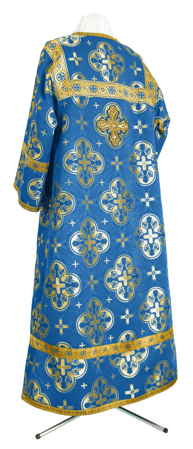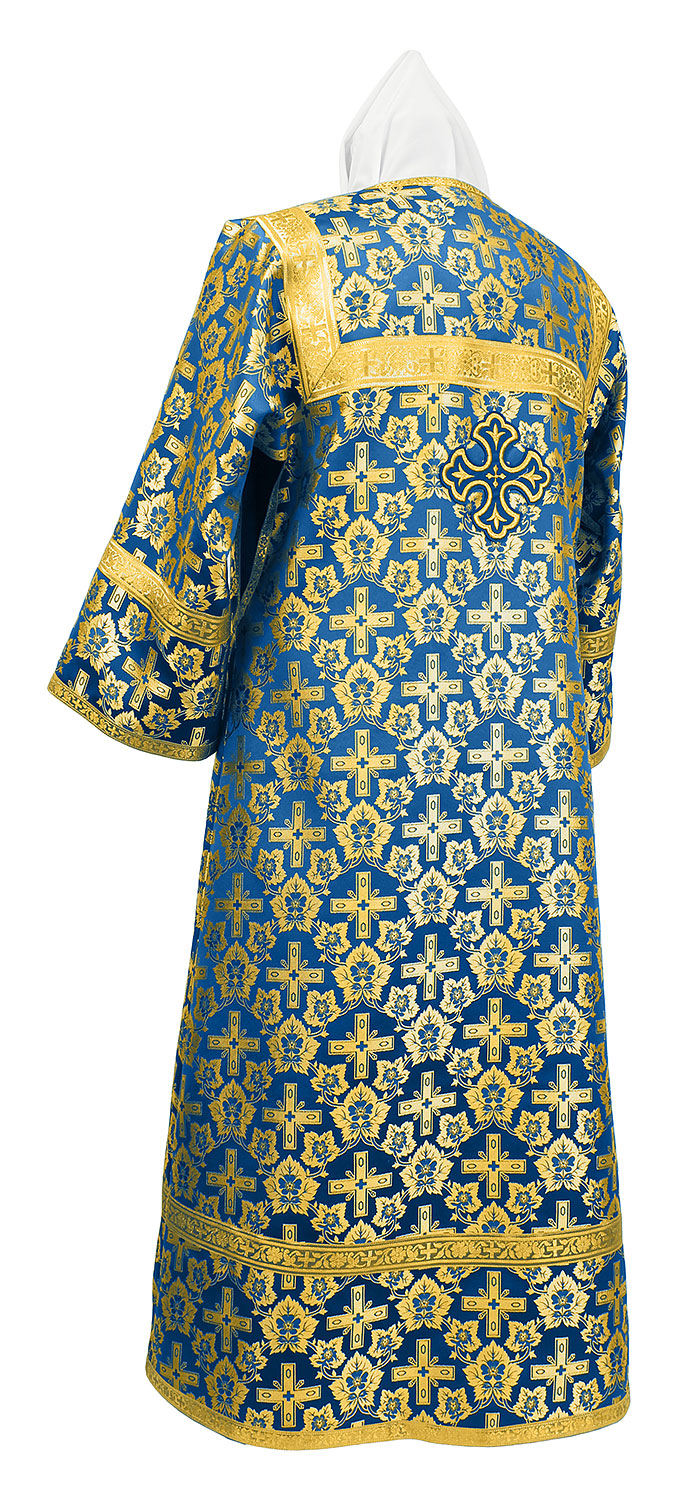 Altar server robe (stikharion, alb). Rayon jacquard brocade, class S3. Please send us your measurements per our Measurement Chart. Please note that picture for this product is a sample one. If you would like specific fabric (in the same fabric class as this product) to be used for your order, please review Fabrics section and make a note in the Notes field of your order (at the last order placing page) which fabric you prefer. Economy vestment type (Ec) means decoration with inexpensive gallon (usually Indian) and non-embroidered crosses or crosses with inexpensive embroidery (at our discretion). For Standard style (St) we use good quality solid galloon and richly embroidered crosses. Premier stile (Pr) means decoration with excellent hand-embroidered crosses and solid jacquard galloons. For all vestments we use natural rayon lining (no synthetics). Excellent quality natural velvet is used for inserts. By default, we make this item with closed sides, i.e. for untonsured persons. So called Deacon's stikharions, i.e. with open buttoned sides are worn by persons who have canonical right (Anth. 5; Laod. 19; VI 69) to be in the altar (Deacon, Subdeacon, Reader and Singer). Washing & Care Instructions: we recommend dry cleaning, no bleach, low temperature ironing inside out. |