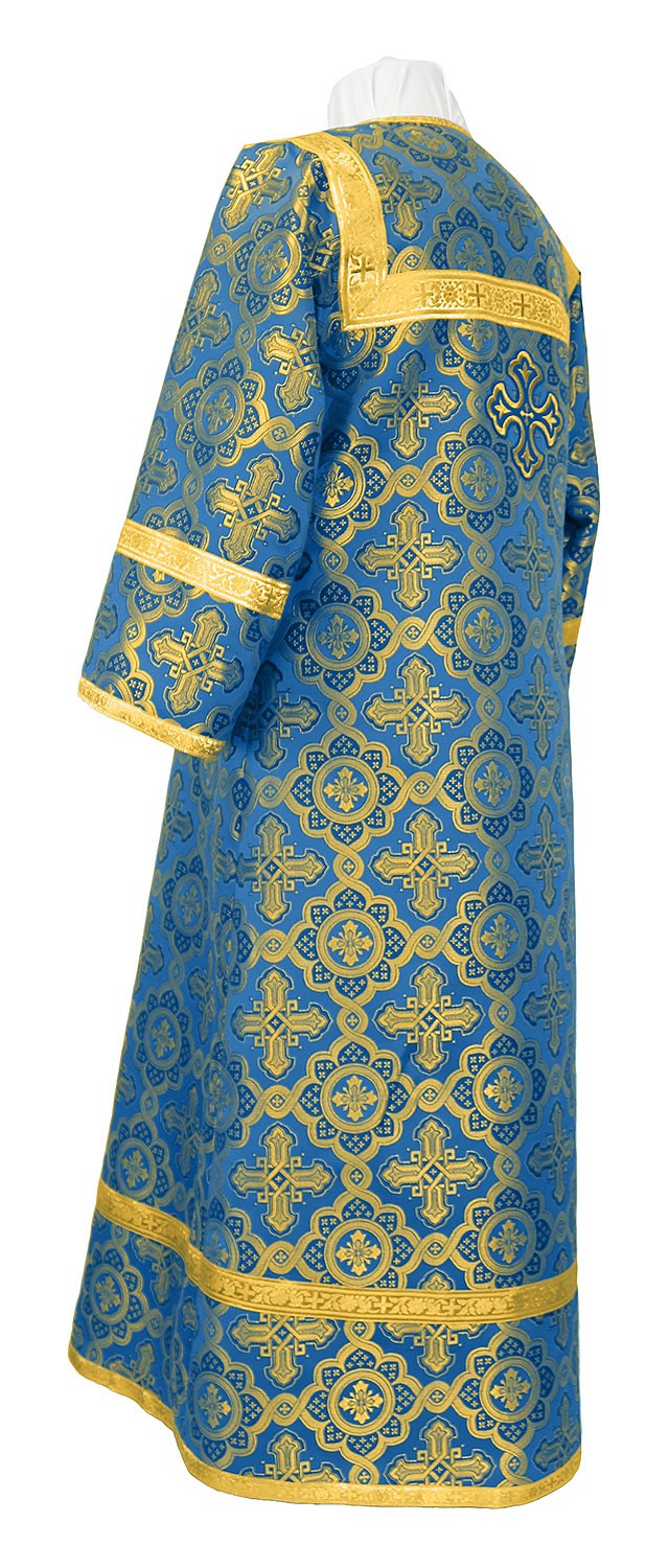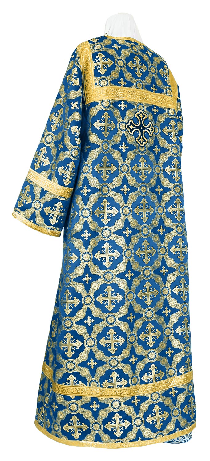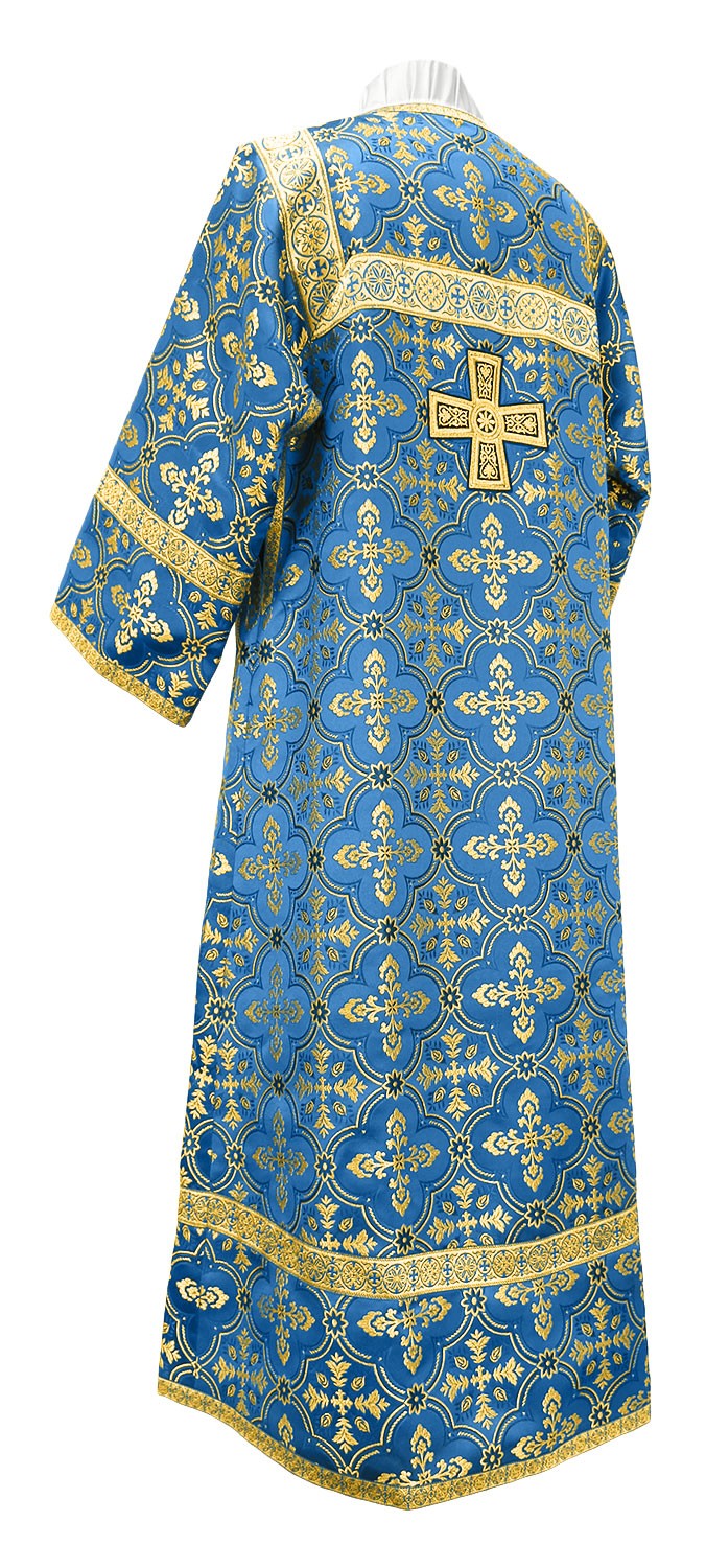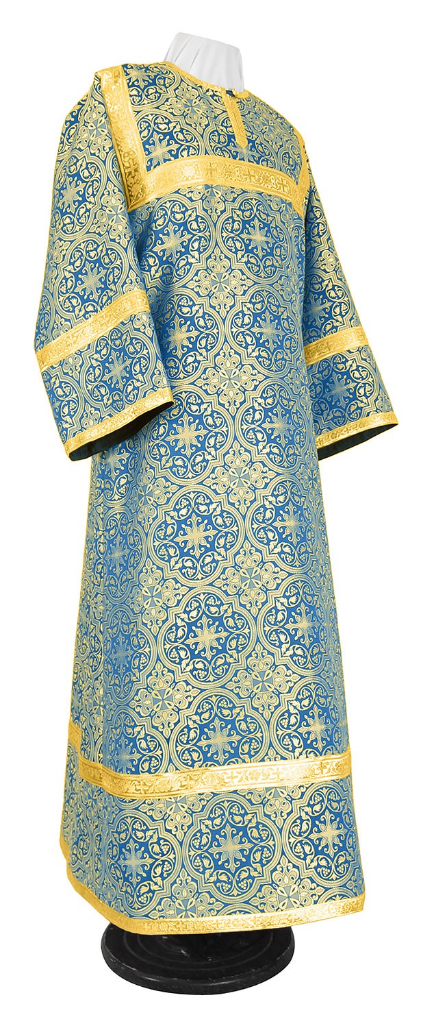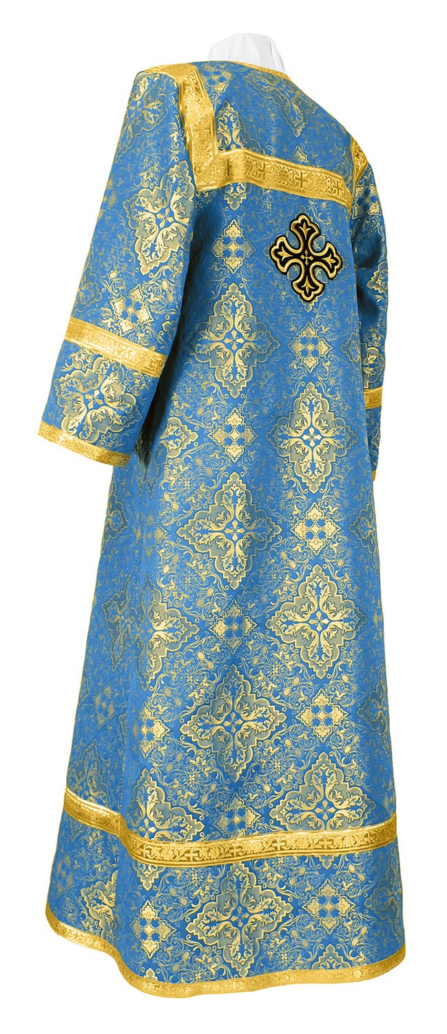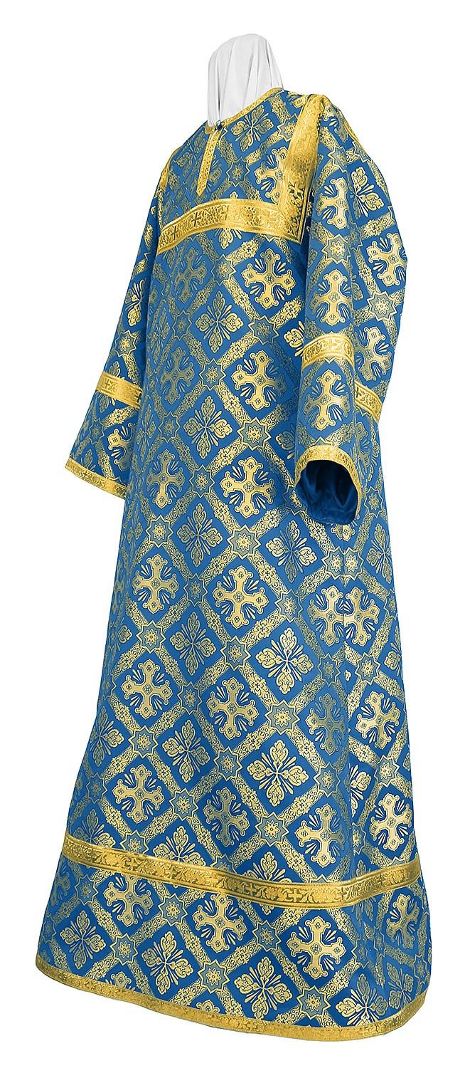 Altar server robe (stikharion, alb). Rayon jacquard brocade, class S3. Please send us your measurements per our Measurement Chart. Please note that picture for this product is a sample one. If you would like specific fabric (in the same fabric class as this product) to be used for your order, please review Fabrics section and make a note in the Notes field of your order (at the last order placing page) which fabric you prefer. Economy vestment type (Ec) means decoration with inexpensive gallon (usually Indian) and non-embroidered crosses or crosses with inexpensive embroidery (at our discretion). For Standard style (St) we use good quality solid galloon and richly embroidered crosses. Premier stile (Pr) means decoration with excellent hand-embroidered crosses and solid jacquard galloons. For all vestments we use natural rayon lining (no synthetics). Excellent quality natural velvet is used for inserts. By default, we make this item with closed sides, i.e. for untonsured persons. So called Deacon's stikharions, i.e. with open buttoned sides are worn by persons who have canonical right (Anth. 5; Laod. 19; VI 69) to be in the altar (Deacon, Subdeacon, Reader and Singer). Washing & Care Instructions: we recommend dry cleaning, no bleach, low temperature ironing inside out. |