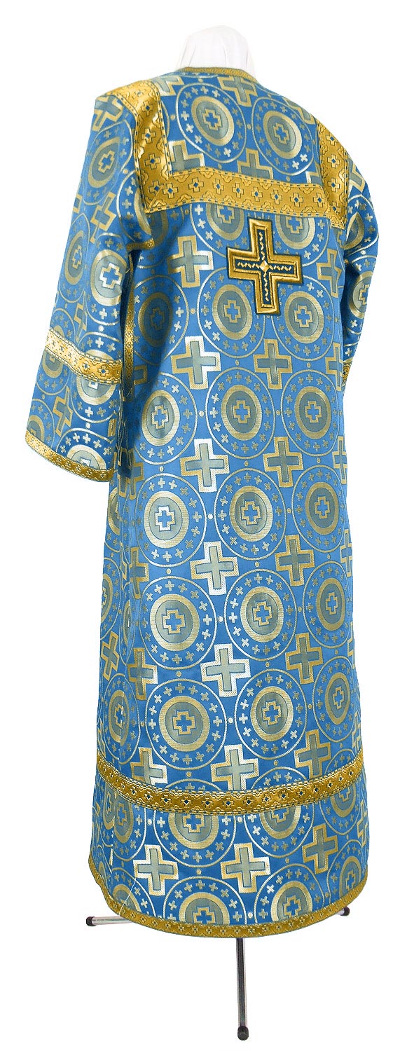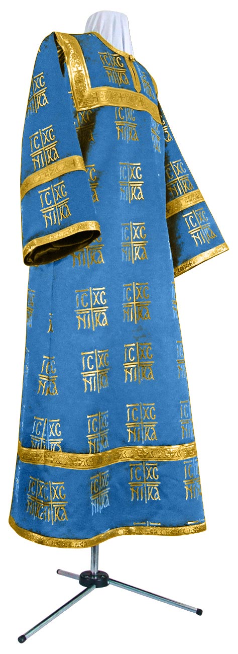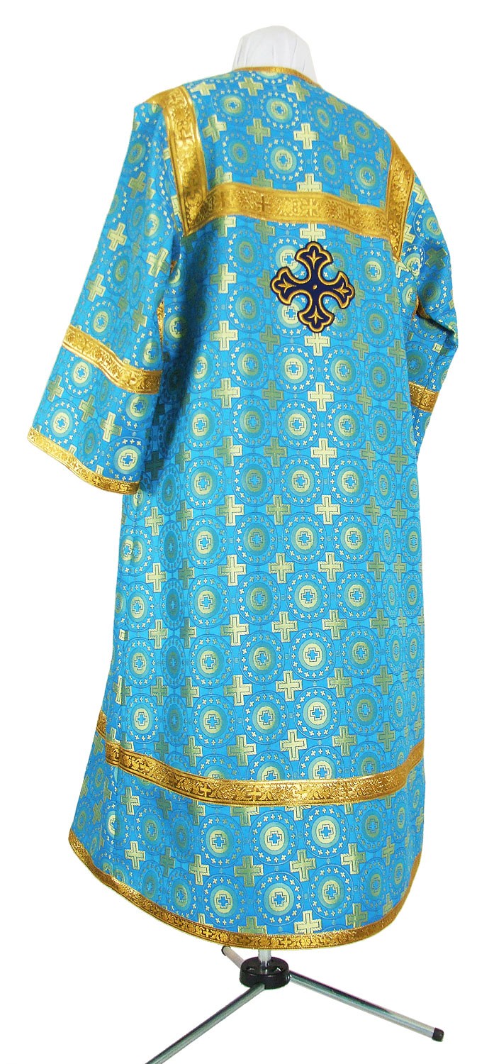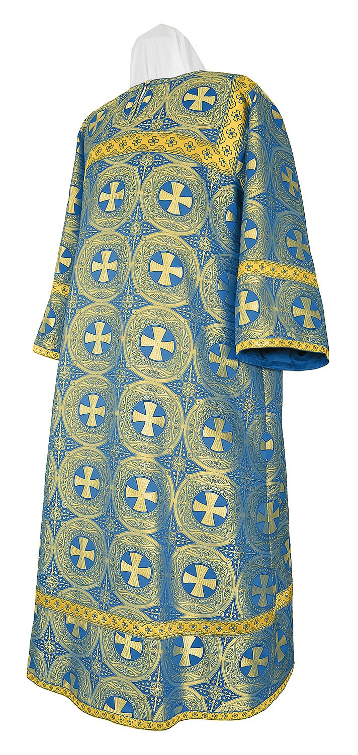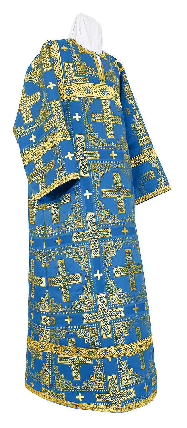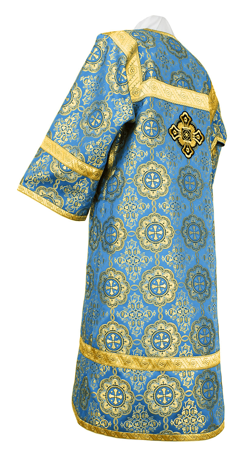Altar server robe (stikharion, alb). Rayon jacquard brocade, class S3. Please send us your measurements per our Measurement Chart. Please note that picture for this product is a sample one. If you would like specific fabric (in the same fabric class as this product) to be used for your order, please review Fabrics section and make a note in the Notes field of your order (at the last order placing page) which fabric you prefer. Economy vestment type (Ec) means decoration with inexpensive gallon (usually Indian) and non-embroidered crosses or crosses with inexpensive embroidery (at our discretion). For Standard style (St) we use good quality solid galloon and richly embroidered crosses. Premier stile (Pr) means decoration with excellent hand-embroidered crosses and solid jacquard galloons. For all vestments we use natural rayon lining (no synthetics). Excellent quality natural velvet is used for inserts. By default, we make this item with closed sides, i.e. for untonsured persons. So called Deacon's stikharions, i.e. with open buttoned sides are worn by persons who have canonical right (Anth. 5; Laod. 19; VI 69) to be in the altar (Deacon, Subdeacon, Reader and Singer). Washing & Care Instructions: we recommend dry cleaning, no bleach, low temperature ironing inside out. |