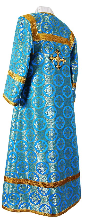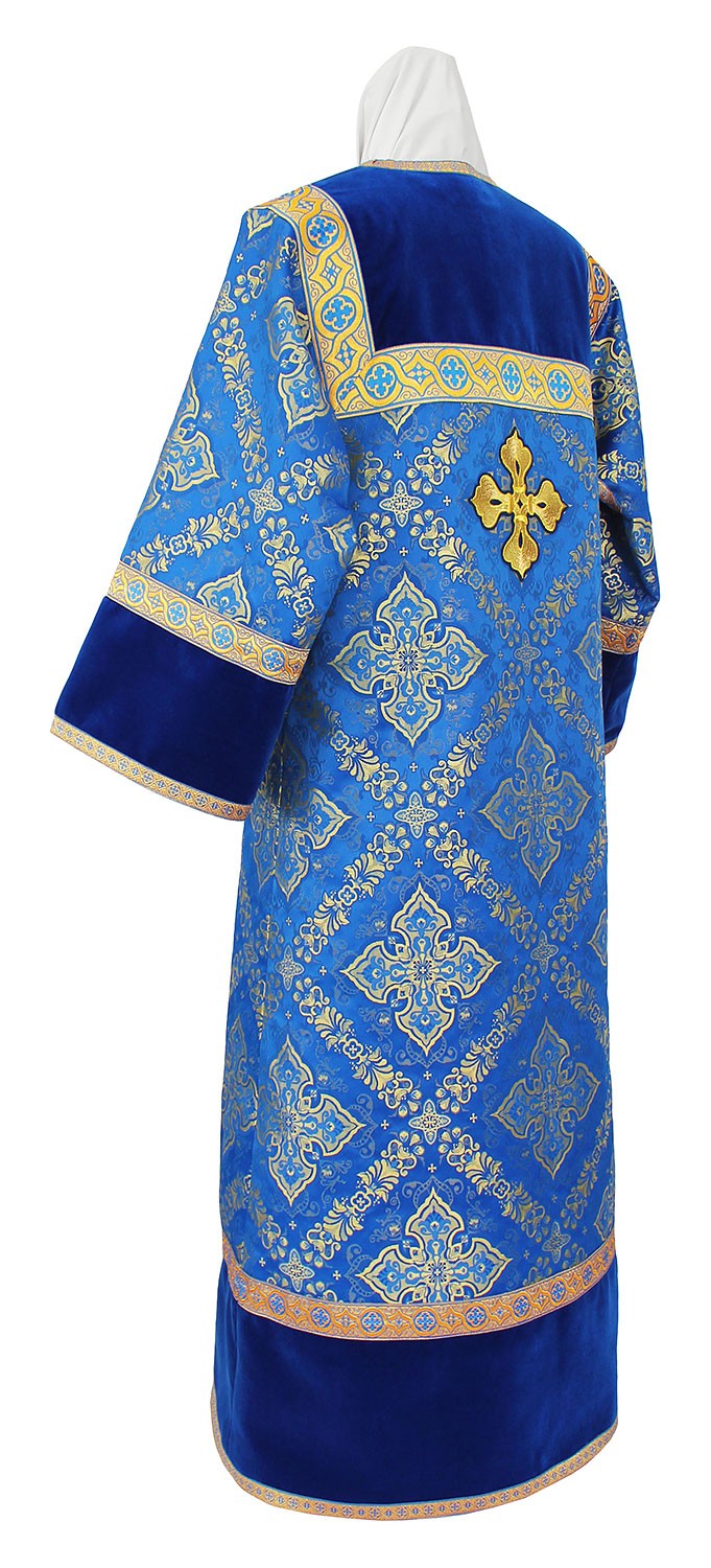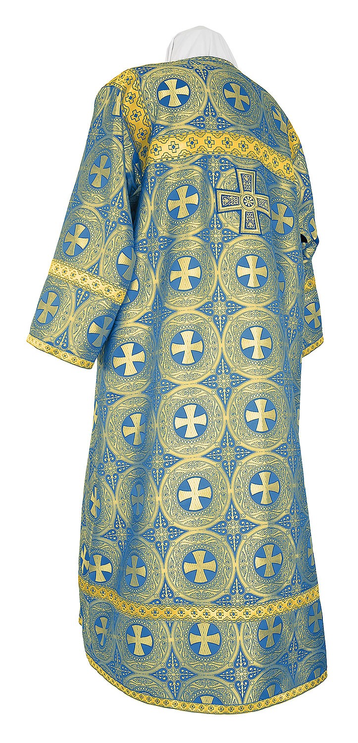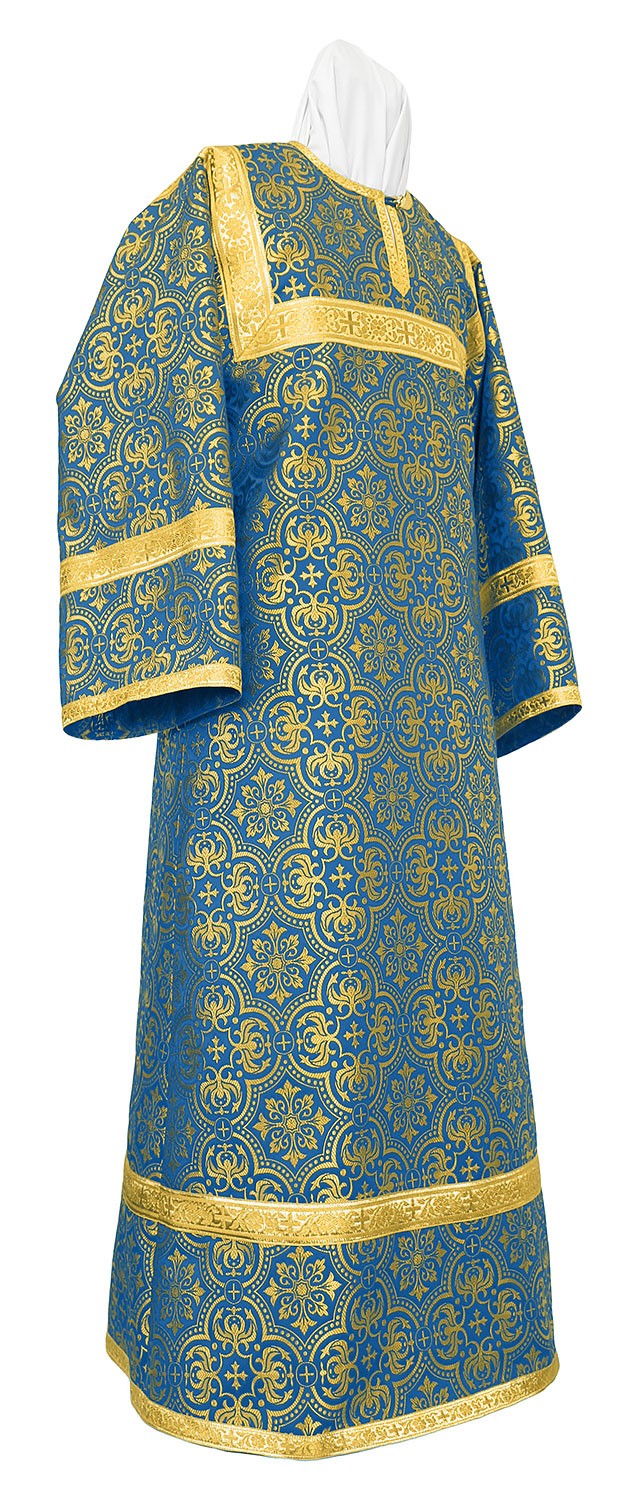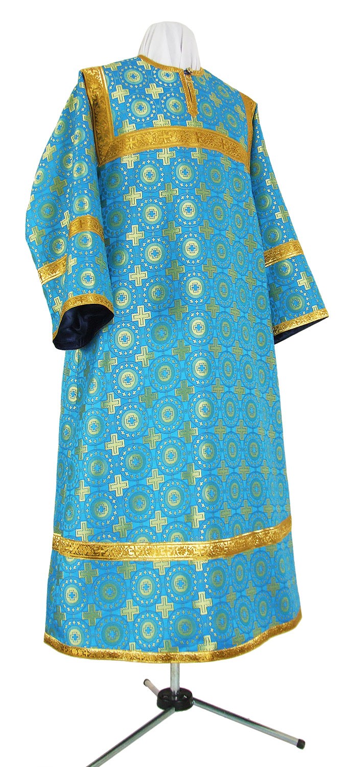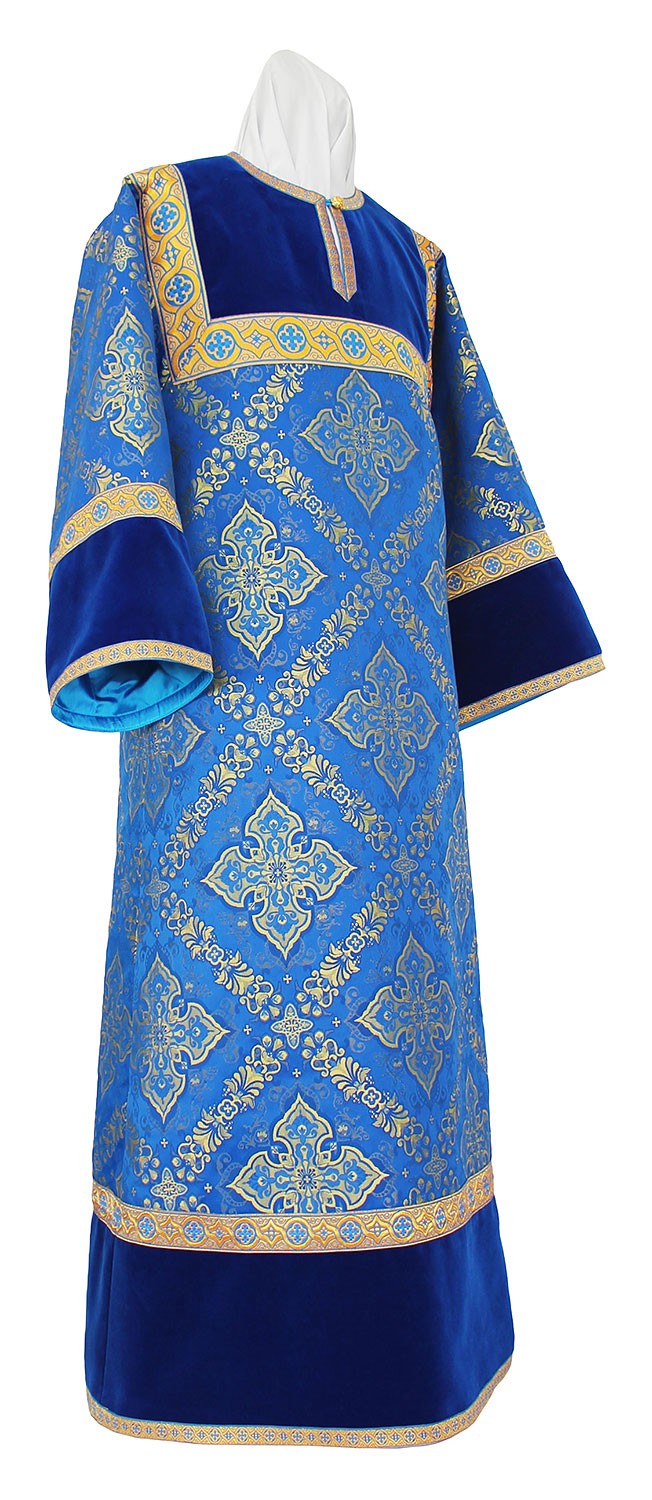 Altar server robe (stikharion, alb). Rayon jacquard brocade, class S3. Please send us your measurements per our Measurement Chart. Please note that picture for this product is a sample one. If you would like specific fabric (in the same fabric class as this product) to be used for your order, please review Fabrics section and make a note in the Notes field of your order (at the last order placing page) which fabric you prefer. Economy vestment type (Ec) means decoration with inexpensive gallon (usually Indian) and non-embroidered crosses or crosses with inexpensive embroidery (at our discretion). For Standard style (St) we use good quality solid galloon and richly embroidered crosses. Premier stile (Pr) means decoration with excellent hand-embroidered crosses and solid jacquard galloons. For all vestments we use natural rayon lining (no synthetics). Excellent quality natural velvet is used for inserts. By default, we make this item with closed sides, i.e. for untonsured persons. So called Deacon's stikharions, i.e. with open buttoned sides are worn by persons who have canonical right (Anth. 5; Laod. 19; VI 69) to be in the altar (Deacon, Subdeacon, Reader and Singer). Washing & Care Instructions: we recommend dry cleaning, no bleach, low temperature ironing inside out. |