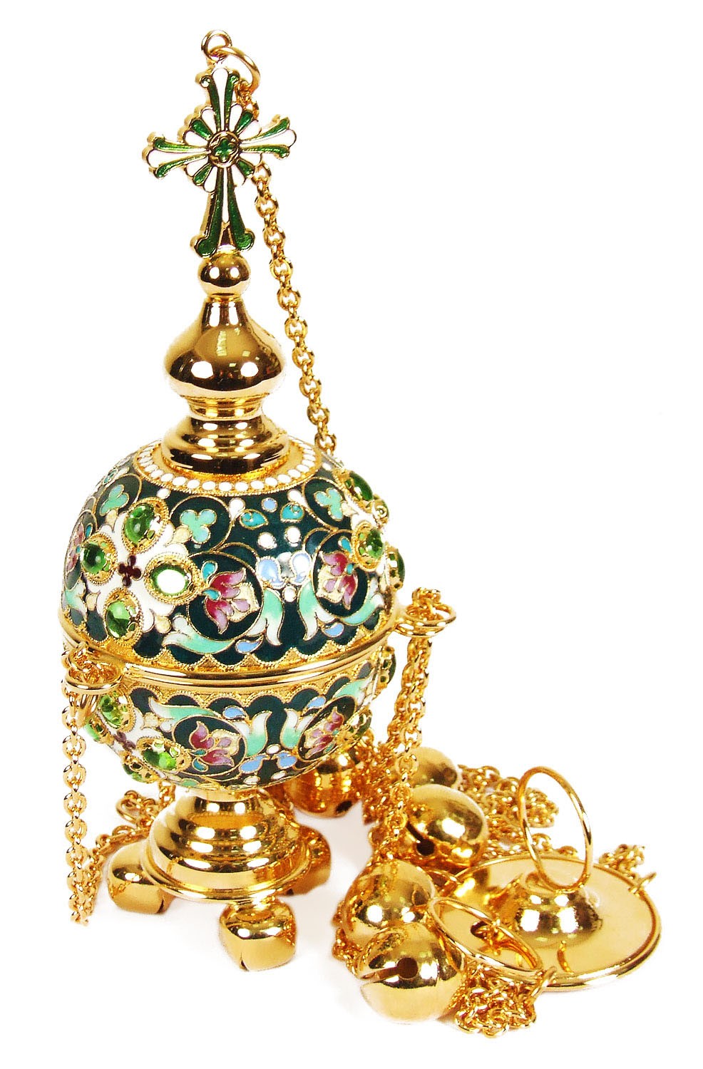 Beautiful traditional Orthodox jewelry Bishop censer. Brass, casting, filigree, enamel, gold-gilding. Size: 4.3''x9.8''x19.7'' (11x25x50 cm).