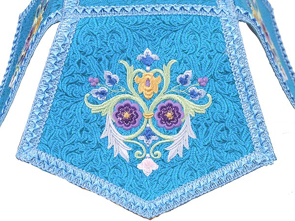Church lecterns: Lectern no.3 Floral Cross silk (rayon brocade) (blue/gold) Klionik metallic brocade (white/silver)