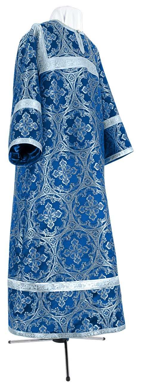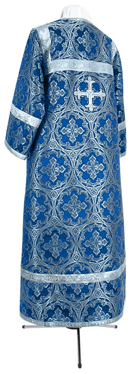 Child altar robe (stikharion, alb). Metallic jacquard brocade, class BG1. Please send us your measurements per our Measurement Chart. Please note that picture for this product is a sample one. If you would like specific fabric (in the same fabric class as this product) to be used for your order, please review Fabrics section and make a note in the Notes field of your order (at the last order placing page) which fabric you prefer. Economy vestment type (Ec) means decoration with inexpensive gallon (usually Indian) and non-embroidered crosses or crosses with inexpensive embroidery (at our discretion). For Standard style (St) we use good quality solid galloon and richly embroidered crosses. Premier stile (Pr) means decoration with excellent hand-embroidered crosses and solid jacquard galloons. For all vestments we use natural rayon lining (no synthetics). Excellent quality natural velvet is used for inserts. By default, we make this item with closed sides, i.e. for untonsured persons. So called Deacon's stikharions, i.e. with open buttoned sides are worn by persons who have canonical right (Anth. 5; Laod. 19; VI 69) to be in the altar (Deacon, Subdeacon, Reader and Singer). Washing & Care Instructions: we recommend dry cleaning, no bleach, low temperature ironing inside out. |