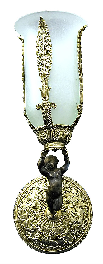 Church wall lamp Birds - 3 lights | Theodosia metallic brocade (red/gold) | Religious icon: Theotokos the Healer of Sorrows |