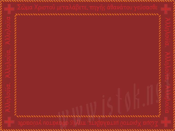 Embroidered communion cloth. Pure linen, embroidery. The text: "???? ??????? ??????????, ????? ???????? ????????. ?????????". Size: 23.6''x31.5'' (60x80 cm).