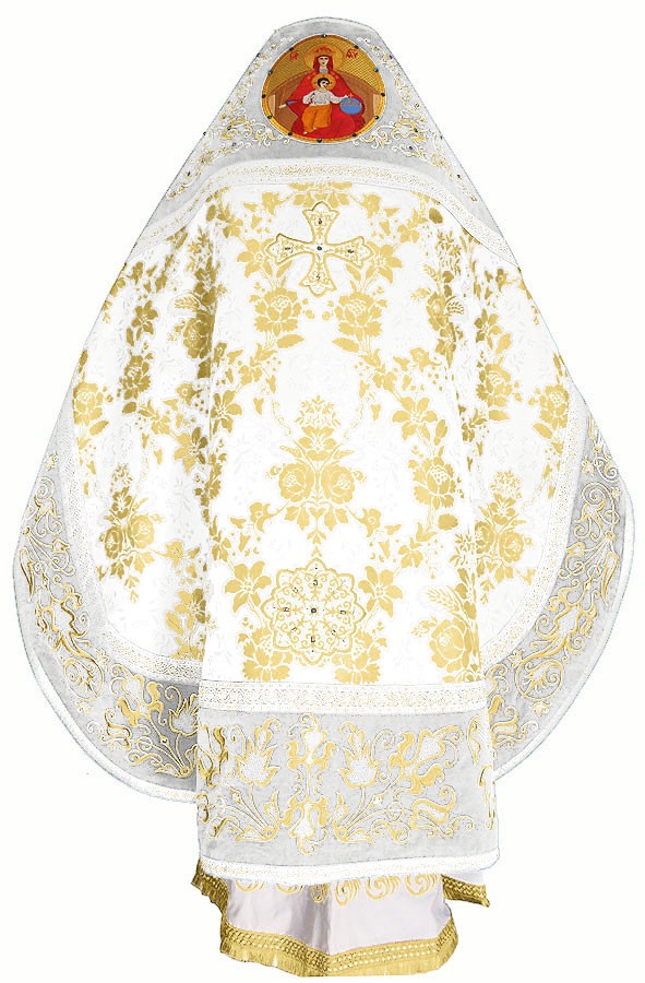 Old-Greek silk (rayon brocade) (blue/gold) | Mitres: Embroidered Bishop mitre no.17 | Prayer-rope set (30 + 10 knots) - Malachite |