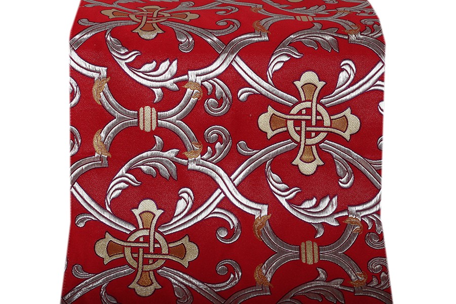 Home - Liturgical Fabrics - Metallic brocades - Red-gold - Forged Cross metallic brocade (red/silver)