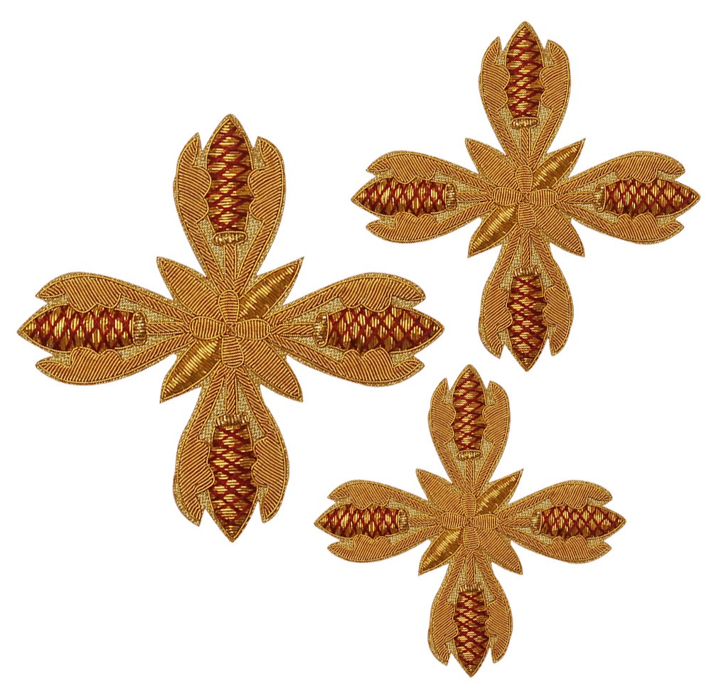 These hand-embroidered crosses are embroidered with original gold bullion threads.