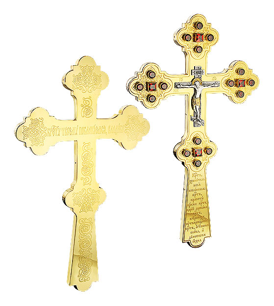 | Poutivl' silk (rayon brocade) (black/gold) | Pectoral cross no.13 | Religious icon: Holy Martyr Tatiana |