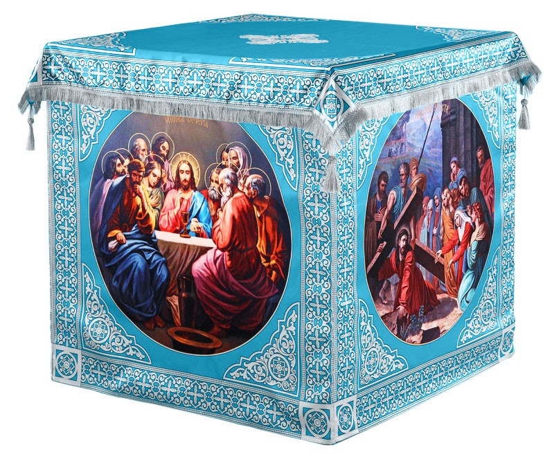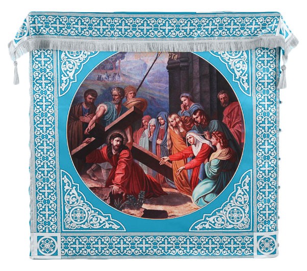 Excellent holy table vestments. Imprint on man-made silk. Price shown is for 39.3"x39.3" (100x100 cm).