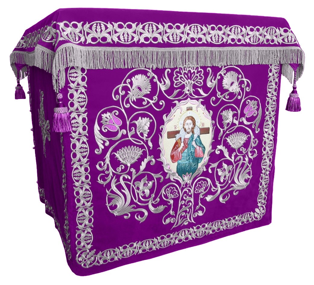 Don silk (rayon brocade) (violet/silver) | Pavlov Pokrov silk (rayon brocade) (white/gold) | Alania metallic brocade (green/silver) |