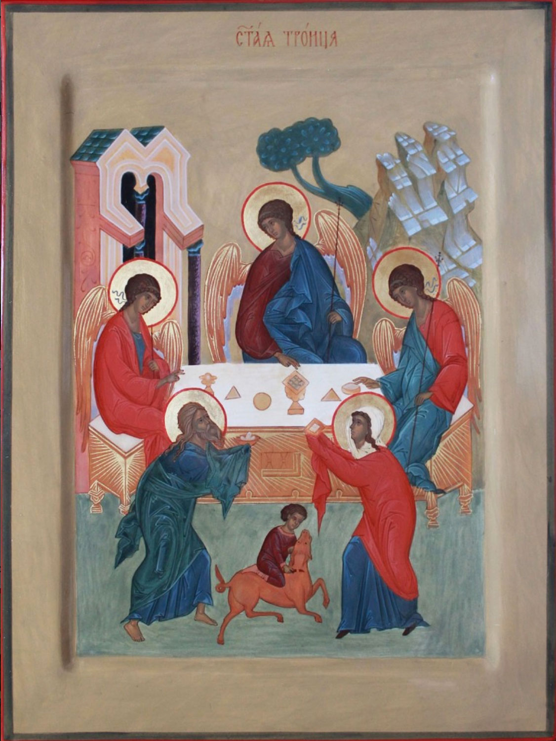 Embroidered icon: Crucifixion of our Lord Jesus Christ. | Altar icon set no.3 | Church furniture: Four-leg support |