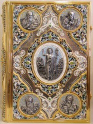 Baptismal cross no.111 | Carved icon: of Holy Archangel Michael | Deacon vestments - metallic brocade BG6 (claret-gold) |
