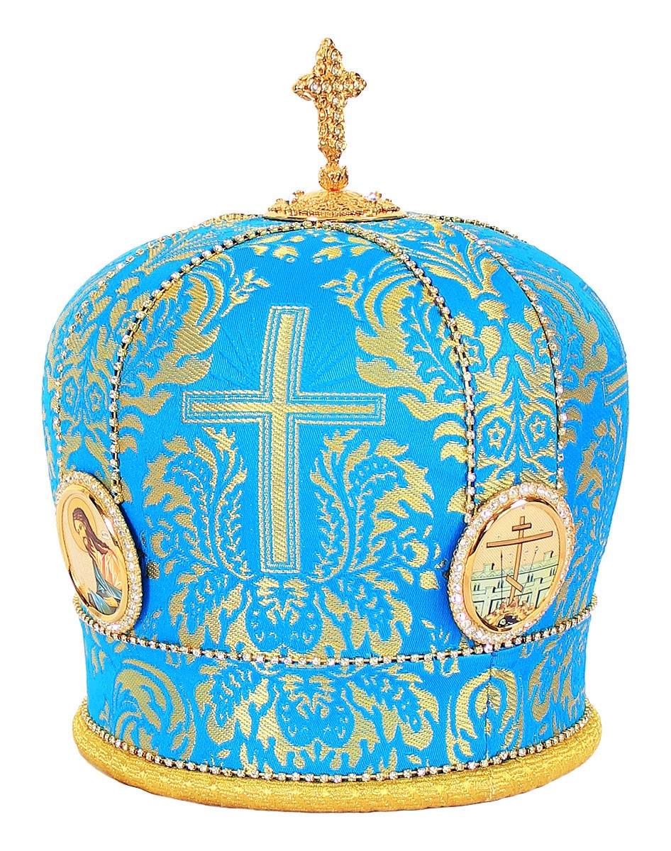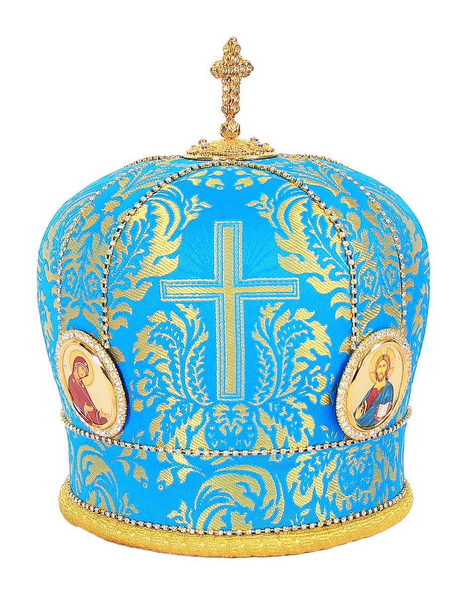| Deacon vestments - metallic brocade BG1 (black-gold) | Church votive glass no.8 (milky) (700 mL) | Bishop panagia Theotokos of Kazan - A1334c |
