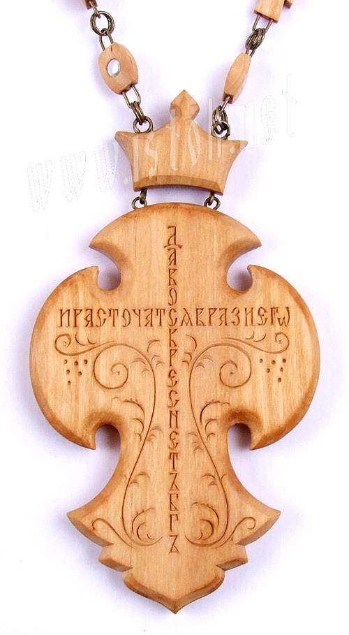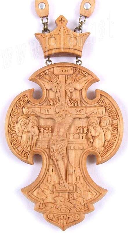 Traditional Orthodox Christian pectoral cross. Memory on . Solid limewood/pearwood, exquisite hand-carving. Size: 3.4''x6.1'' (87x155 mm).