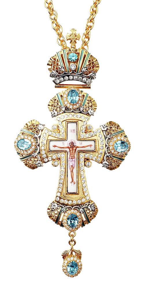 | Arkhangelsk metallic brocade (white/silver) | Icon: The Last Supper (gold-gilding) | Pectoral cross - A419 |