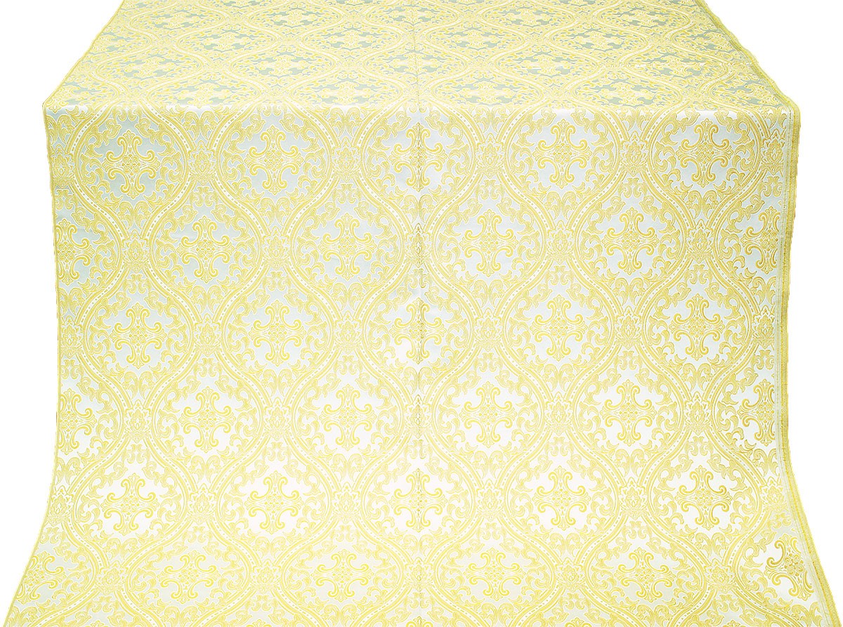 Icon shelf - 18 | Jewelry Bishop panagia (encolpion) - A496 (gold-gilding) | Posad Trinity metallic brocade (blue/white with gold) |