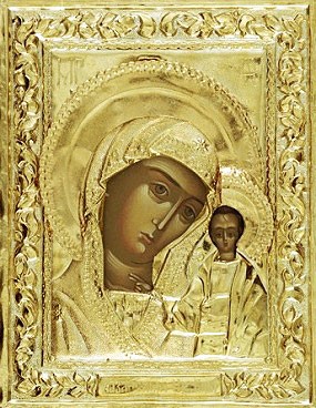 Embroidered Russian Priest vestments - Eden Birds (red-gold) | Russian kosovorotka 15" (38) #418 | Icon: Most Holy Theotokos of Vladimir - MS05 (5.5''x7.1'' (14x18 cm)) |