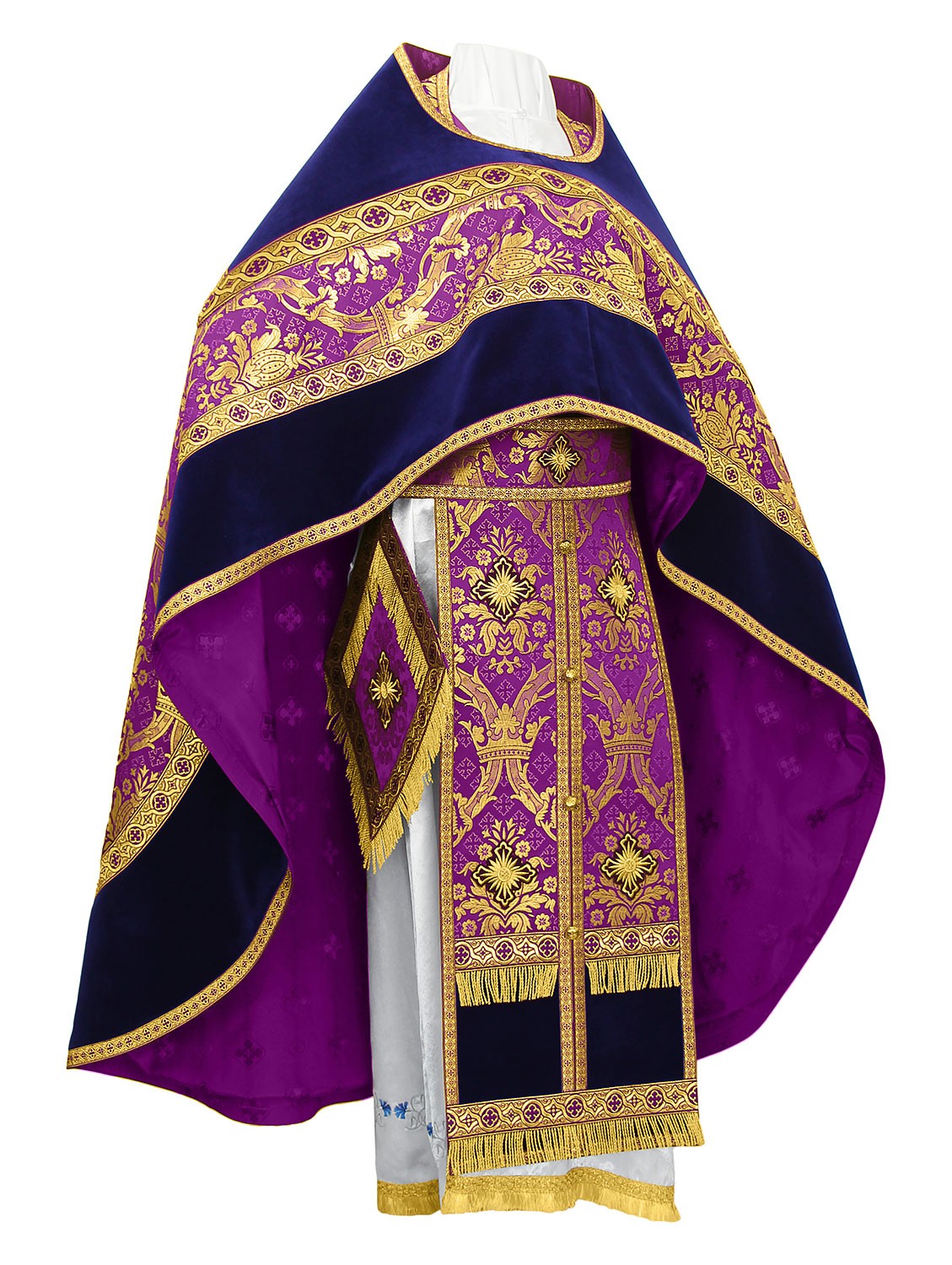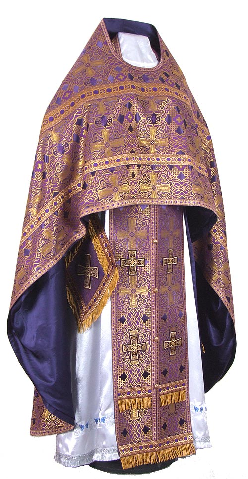 Mitres: Embroidered Bishop mitre no.507 | Epitrakhilion set - rayon brocade S2 (blue-silver) | Embroidered icon: Crucifixion of our Lord Jesus Christ. |