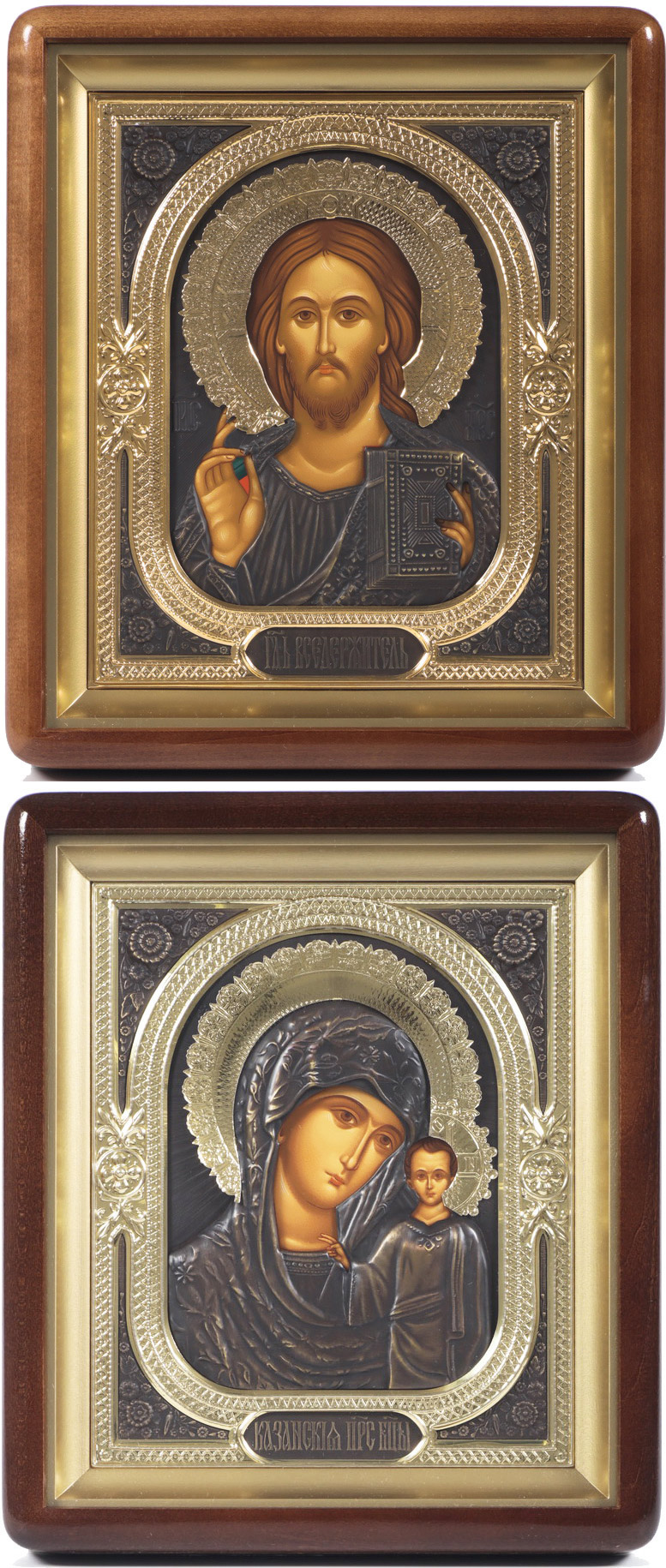 Murom silk (rayon brocade) (green/gold) | Bishop vestments - rayon brocade S3 (white-silver) | Icon: Holy Martyr Kyrion of Sebastia - O |