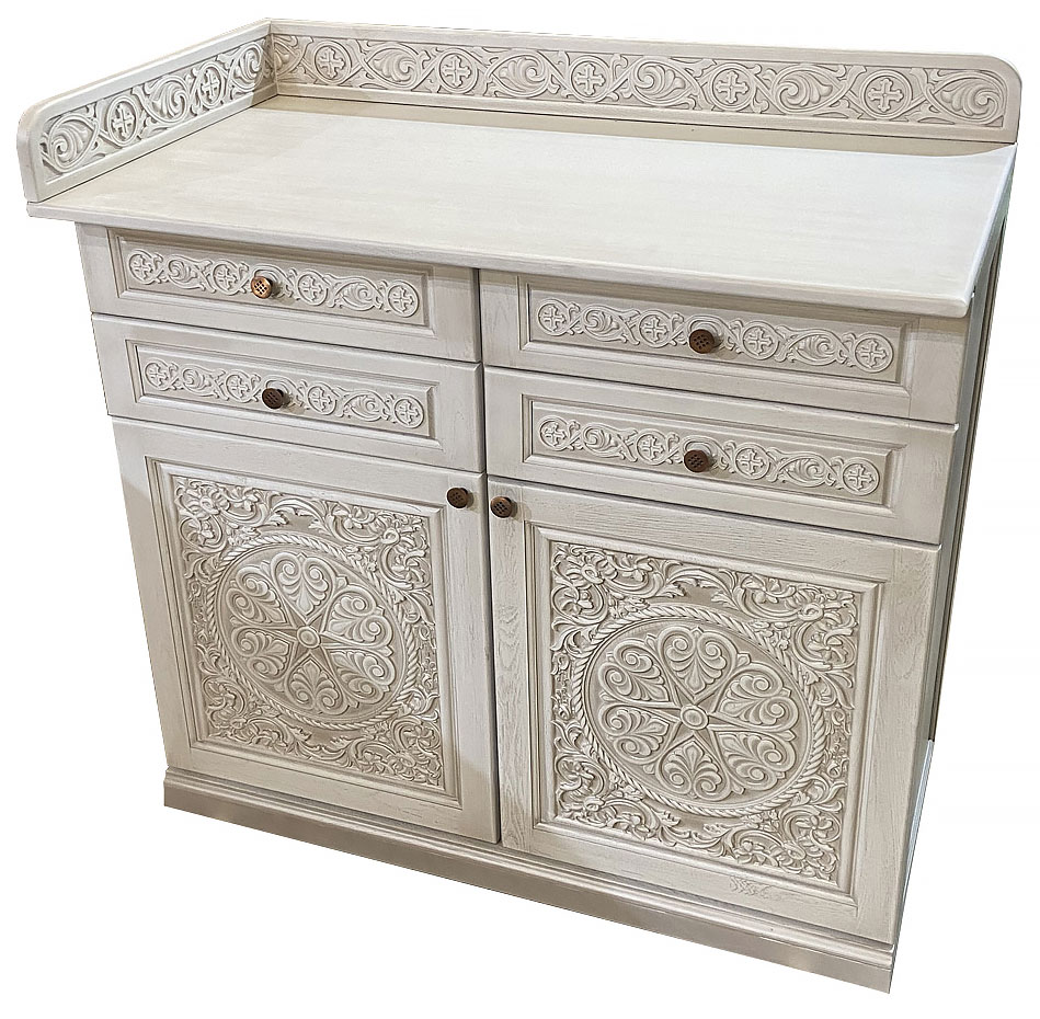 | Communion cloth Vine (English) | Ryazan metallic brocade (violet/silver) | Posad silk (rayon brocade) (white/silver) |