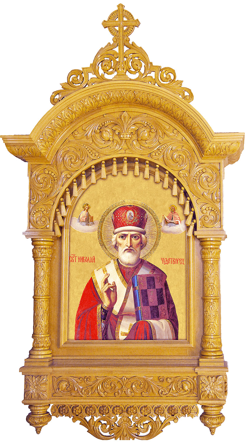 Panagia - 136 | Religious icons: St. Nicholas the Wonderworker - 20 | Elets silk (rayon brocade) (white/silver) |