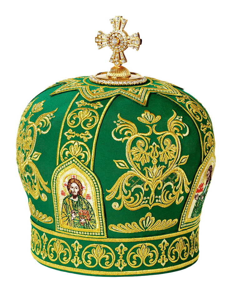 | Damask metallic brocade (white/silver) | Pectoral chest cross no.120 | Mitres: Embroidered mitre no.94 |