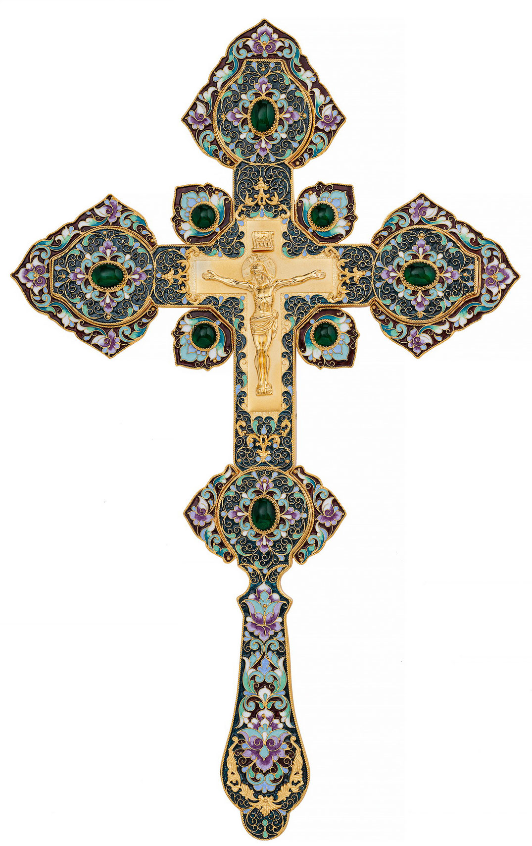 Bishop vestments - metallic brocade BG5 (white-silver) | Greek Priest vestment - rayon brocade S3 (violet-gold) | Memorial table for 20 candles |