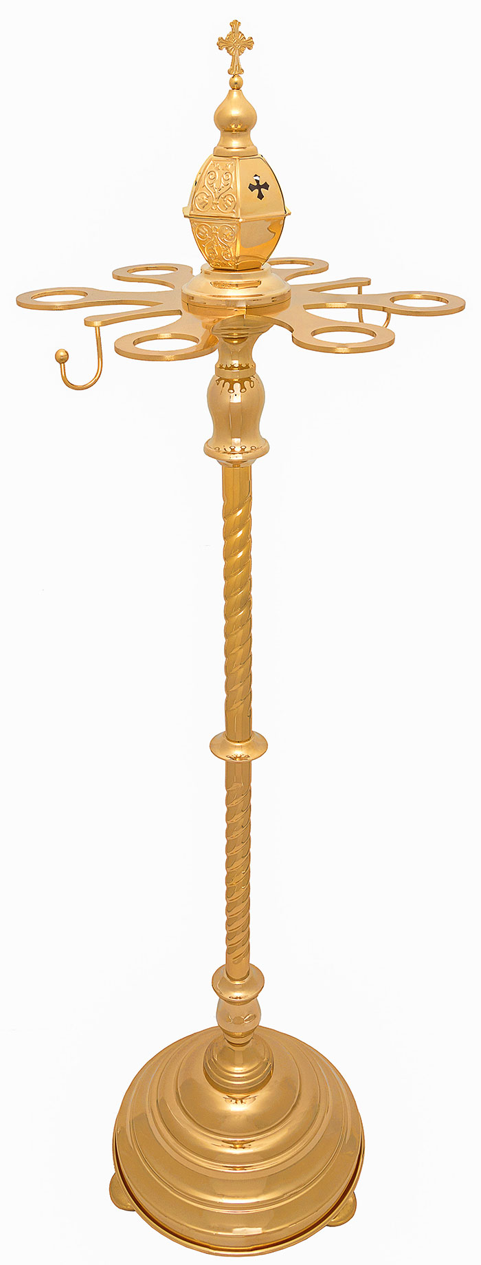 Four-level church chandelier - 4 (48 lights) | Ostrozh silk (rayon brocade) (claret/gold) | Russian Priest vestments - metallic brocade BG4 (claret-gold) |