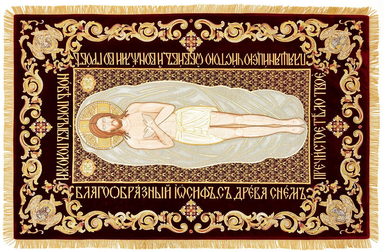 | Blessing cross - 18 | Vine silk (rayon brocade) (red/gold) | Ostrozh metallic brocade (red/gold) |