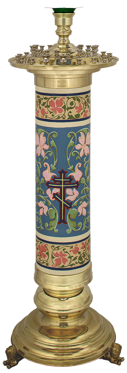 Pectoral chest cross - 254 | Greek Alpha-and-Omega metallic brocade (blue/gold) | Subdeacon vestments - metallic brocade BG4 (blue-silver) |