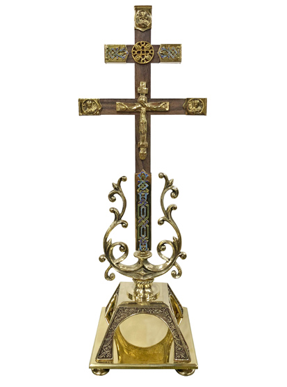 Exquisite traditional Orthodox Holy table cross a copy of the XI cent. prototype. Brass, hand-casting, natural stones, enamel.