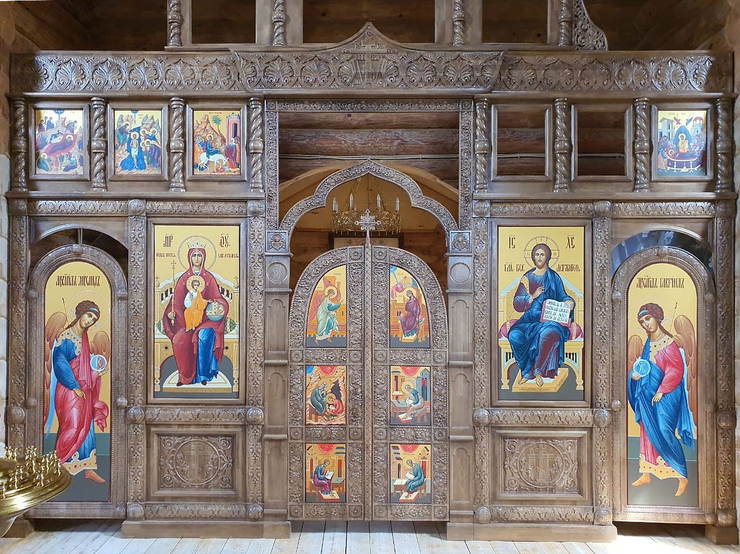 Traditional Orthodox Christian iconostasis. Solid wood, carving, lacquering. The price of the product doesn't include icons. Size: 196.9''x177.2''x9.8'' (500x450x25 cm).