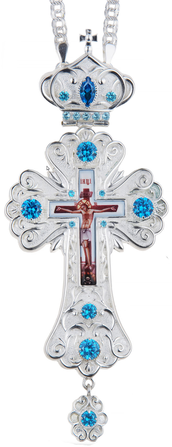 Jewelry mitre cross - A614 (gold-gilding) | Sebastian metallic brocade (white/silver) | Orthodox service Gospel book in jewelry cover no.89 |
