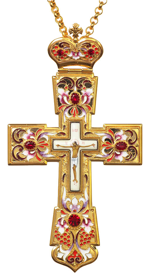 Bishop pectoral set no.101a | Muse silk (rayon brocade) (blue/silver) | Table icon: St. Nicholas the Wonderworker, no.4 |
