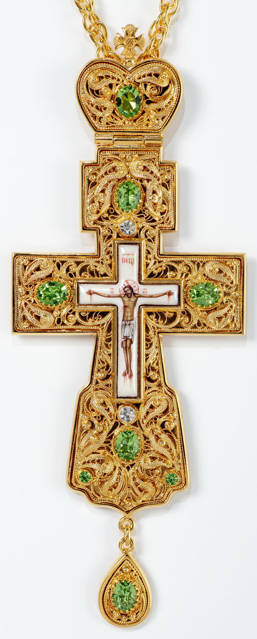 Pectoral chest cross - 110 | Russian Priest vestments - metallic brocade BG6 (green-gold) | Greek Priest vestment - rayon brocade S4 (blue-silver) |