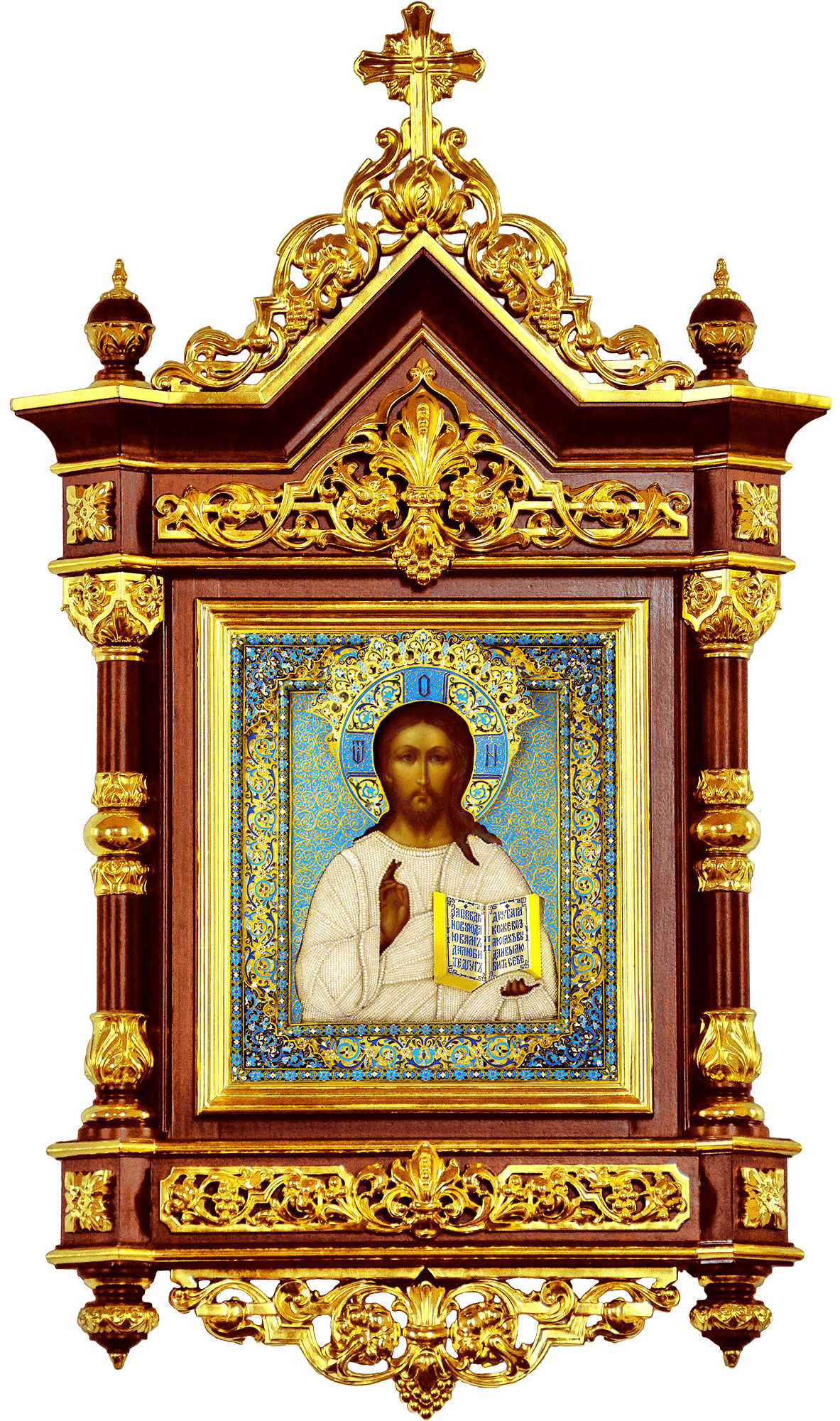 Orthodox service Gospel book in jewelry cover no.85 | Blessing cross - A1177 | Hanging vigil lamp - 64 |